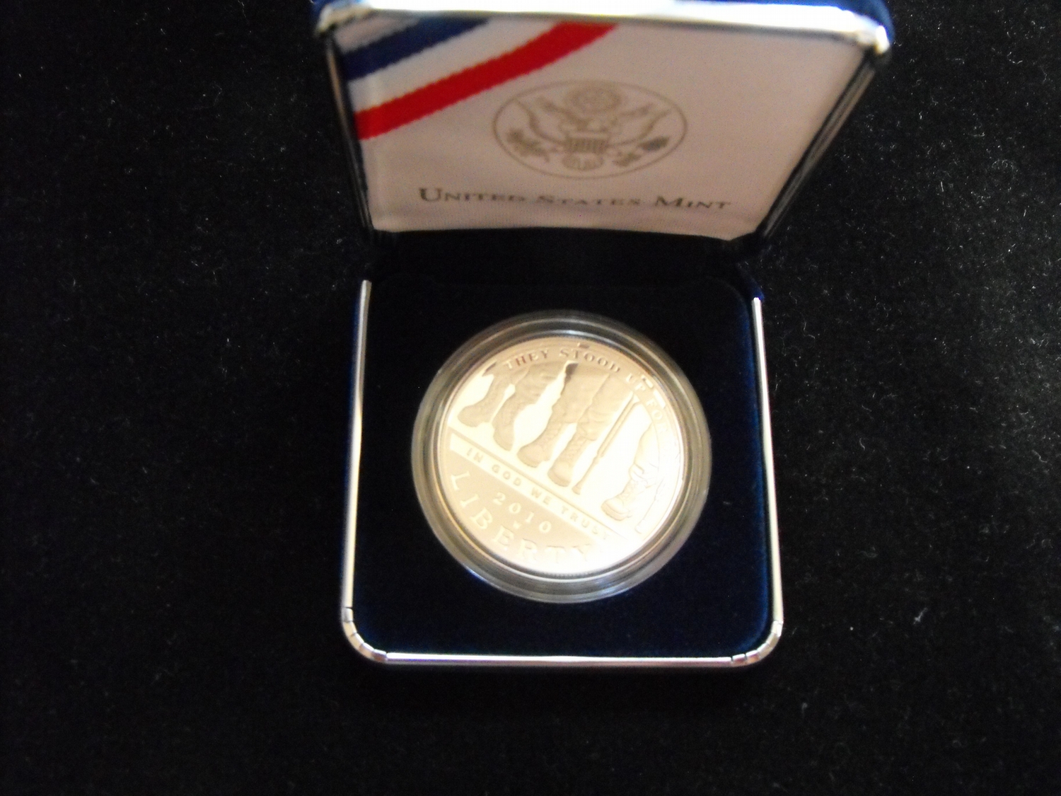 2010 SILVER DOLLAR AMERICAN VETERANS WITH BOX AND PAPERS