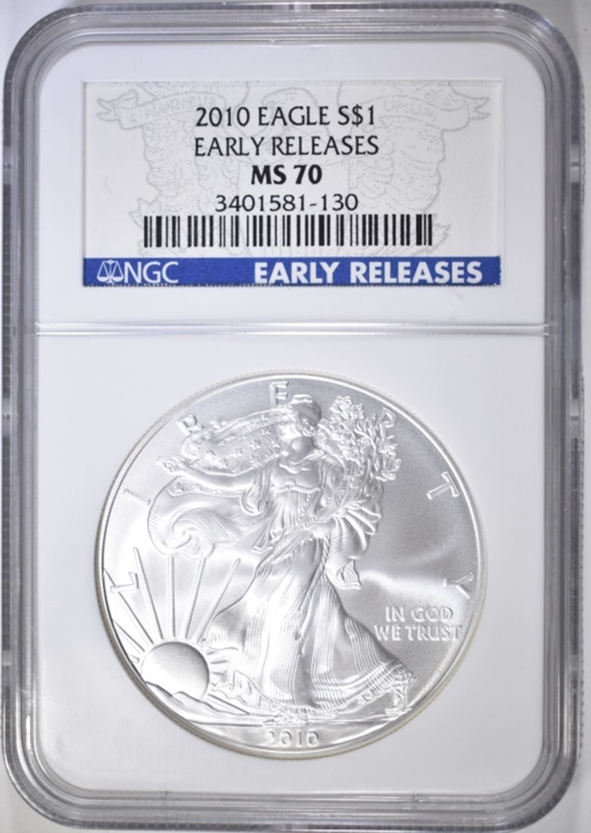 2010 SILVER EAGLE, NGC MS-70 EARLY RELEASES