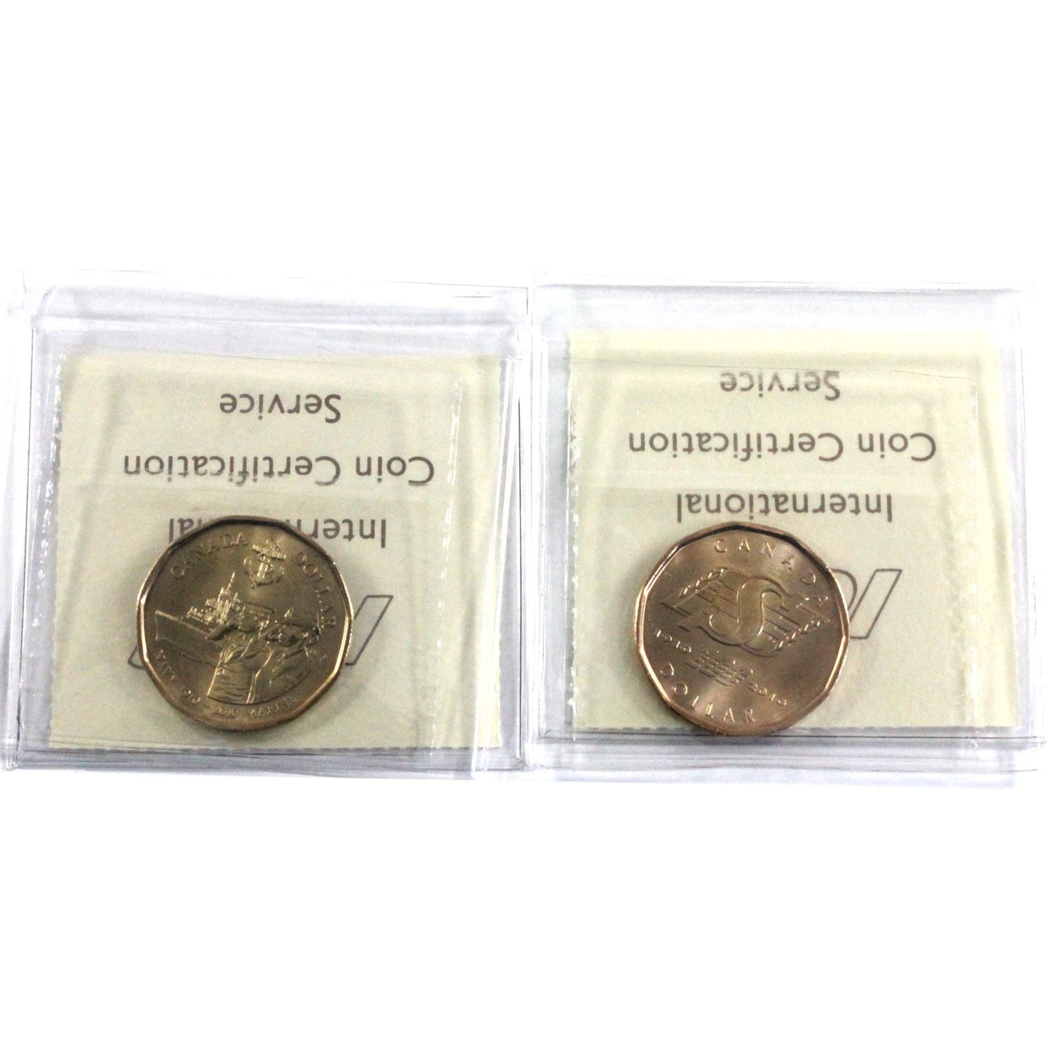 2010 Saskatchewan Roughriders Loon Dollar MS-65 & 2010 Navy Dollar MS-64 Both ICCS Certified. 2pcs