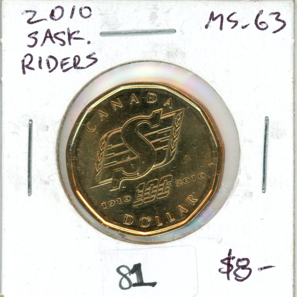 2010 Saskatchewan Roughriders Loonei Dollar. MS-63. Go Riders!