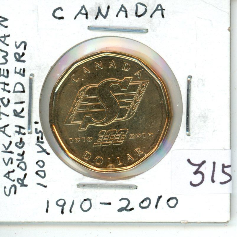 2010 Saskatchewan Roughriders Loonie Dollar. MS-63 from an original roll.