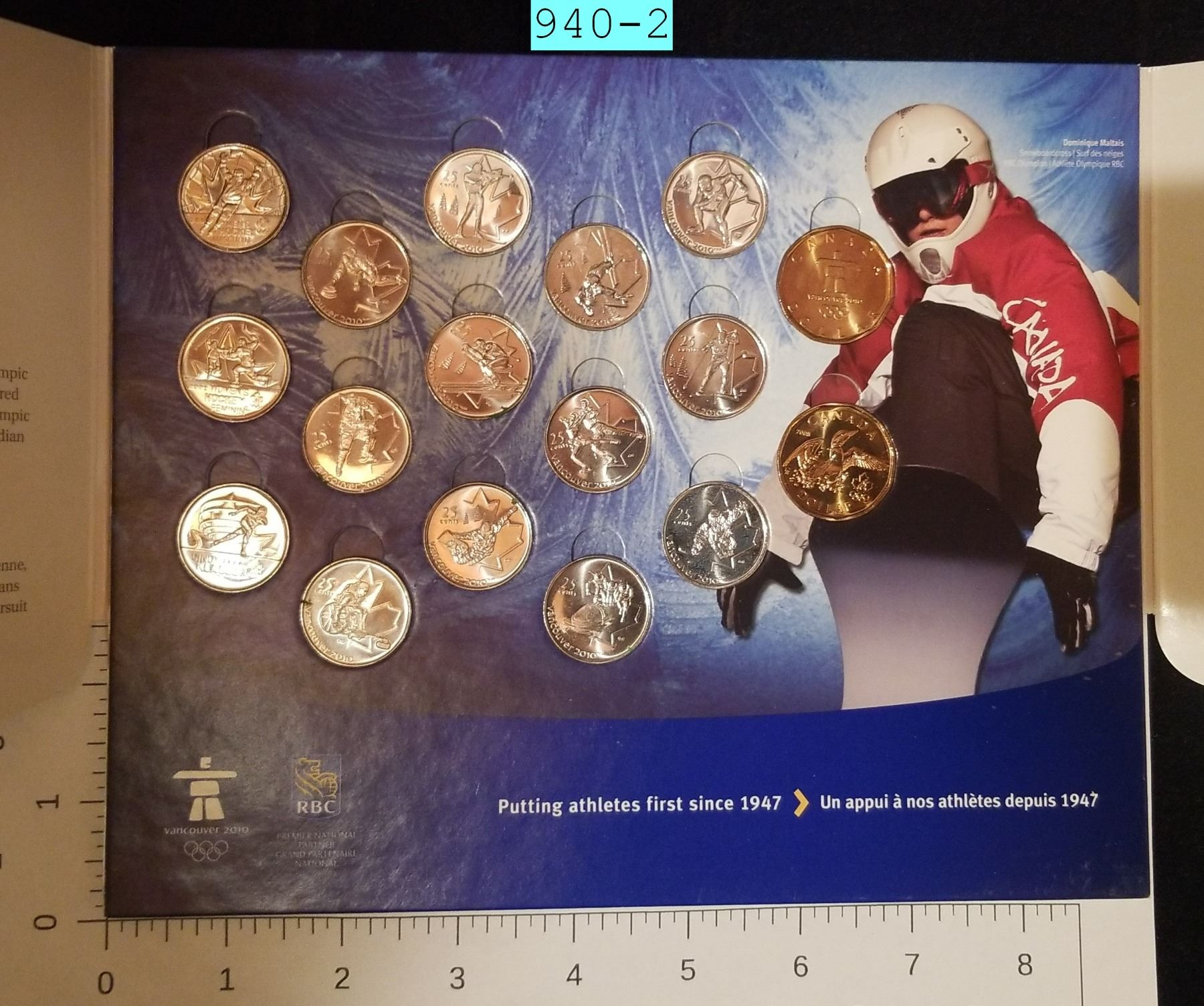 2010 Seventeen Canadain Coins Loonies (2) And Quarters (15) 2010 Olympics Set