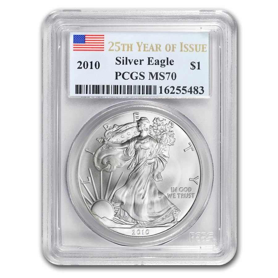 2010 Silver American Eagle MS-70 PCGS (25th Year of Issue)