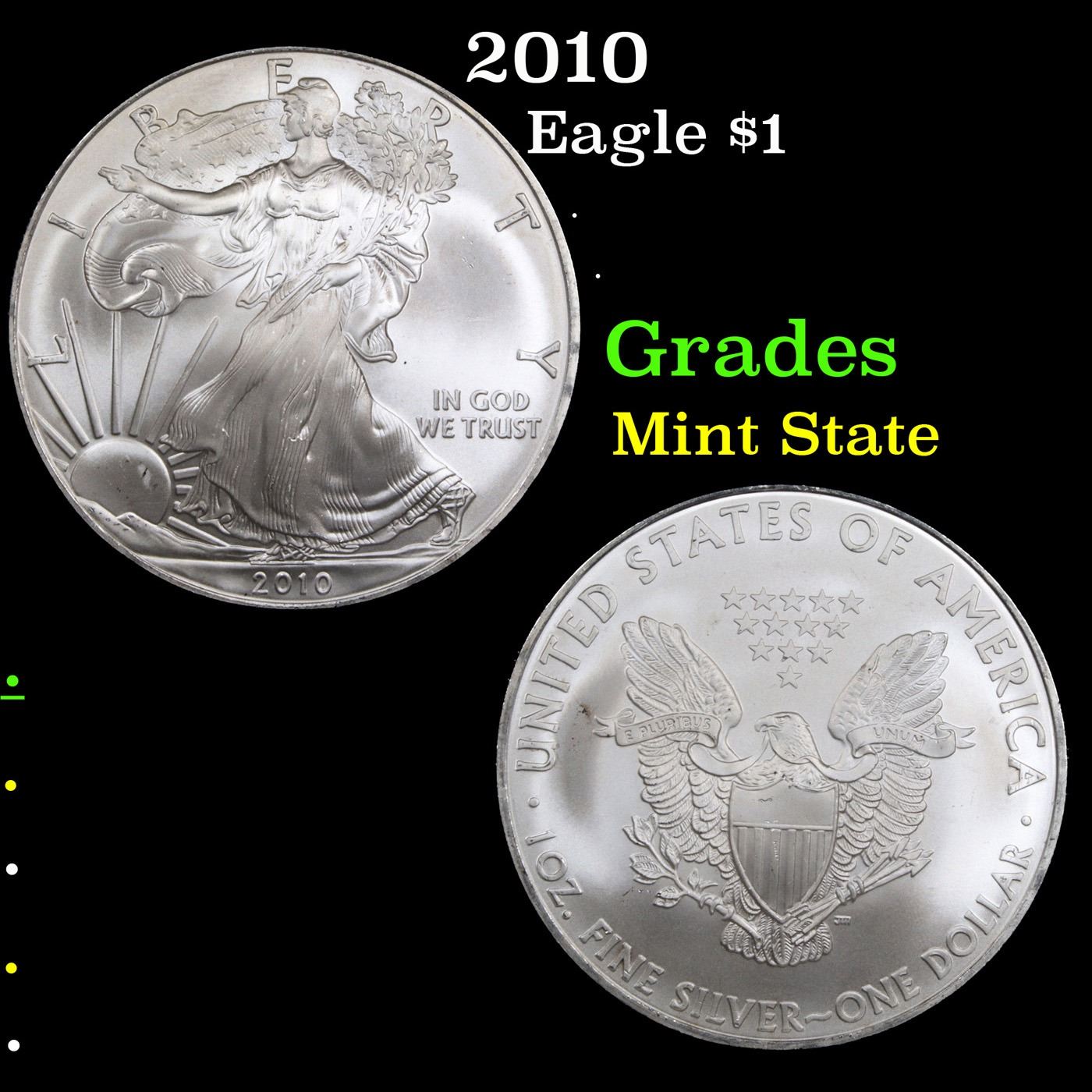 2010 Silver Eagle Dollar $1 Grades Mint State.