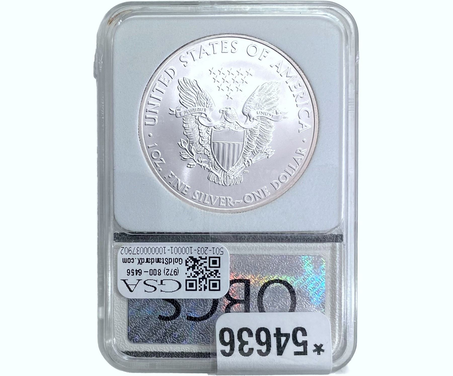 e. Coins sold referencing a third-party grading service are sold “AS IS” without any express or implied warranty, except for a guarantee by GSA that they are genuine. Removal or alteration of the holder, voids all of Bidder’s claims concerning that Product. Certain warranties may be available from the grading services and Bidders are referred to them for further details: Numismatic Guaranty Corporation (NGC), PO Box 4776, Sarasota, FL 34230, www.ngccoin.com/services/writtenguarantee.asp; Professional Coin Grading Services (PCGS), PO Box 9458, Newport Beach, CA 92658, www.pcgs.com/guarantee.html; ANACS, 6555 S. Kenton St., Ste. 303, Englewood, CO 80111; and Independent Coin Grading Co. (ICG), 7901 East Bellview, Ave., Suite 50, Englewood, CO 80111.