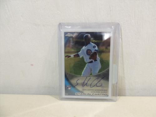 2010 TOPPS #195 AUTOGRAPH ROOKIE BASEBALL CARD STARLIN CASTRO. NO COA. AS SHOWN. VIEW PICTURE FOR DETAIL. PLEASE BE ADVISED, AND INFORMED REGARDING SIGNATURES OR AUTOGRAPHS THAT WE SELL AT AUCTION: WE ARE NOT AUTHENTICATORS, AND WE DO NOT AUTHENTICATE, OR VALIDATE ANY AUTOGRAPHS OR SIGNATURES THAT WE OFFER AT AUCTION. SOME AUTOGRAPHS OR SIGNATURES MAY COME WITH AN AUTHENTICATION FROM ANY ONE OF LITERALLY HUNDREDS OF AUTHENTICATORS ACROSS THE COUNTRY, AND AROUND THE WORLD. WE DO NOT ENDORSE ANY AUTHENTICATOR, NOR DO WE GUARANTEE THAT ANY AUTOGRAPH OR SIGNATURE IS AUTHENTIC, OR THAT IT WILL PASS AUTHENTICATION BY ANY AUTHENTICATOR. ALL AUTOGRAPHS OR SIGNATURES ARE SOLD
