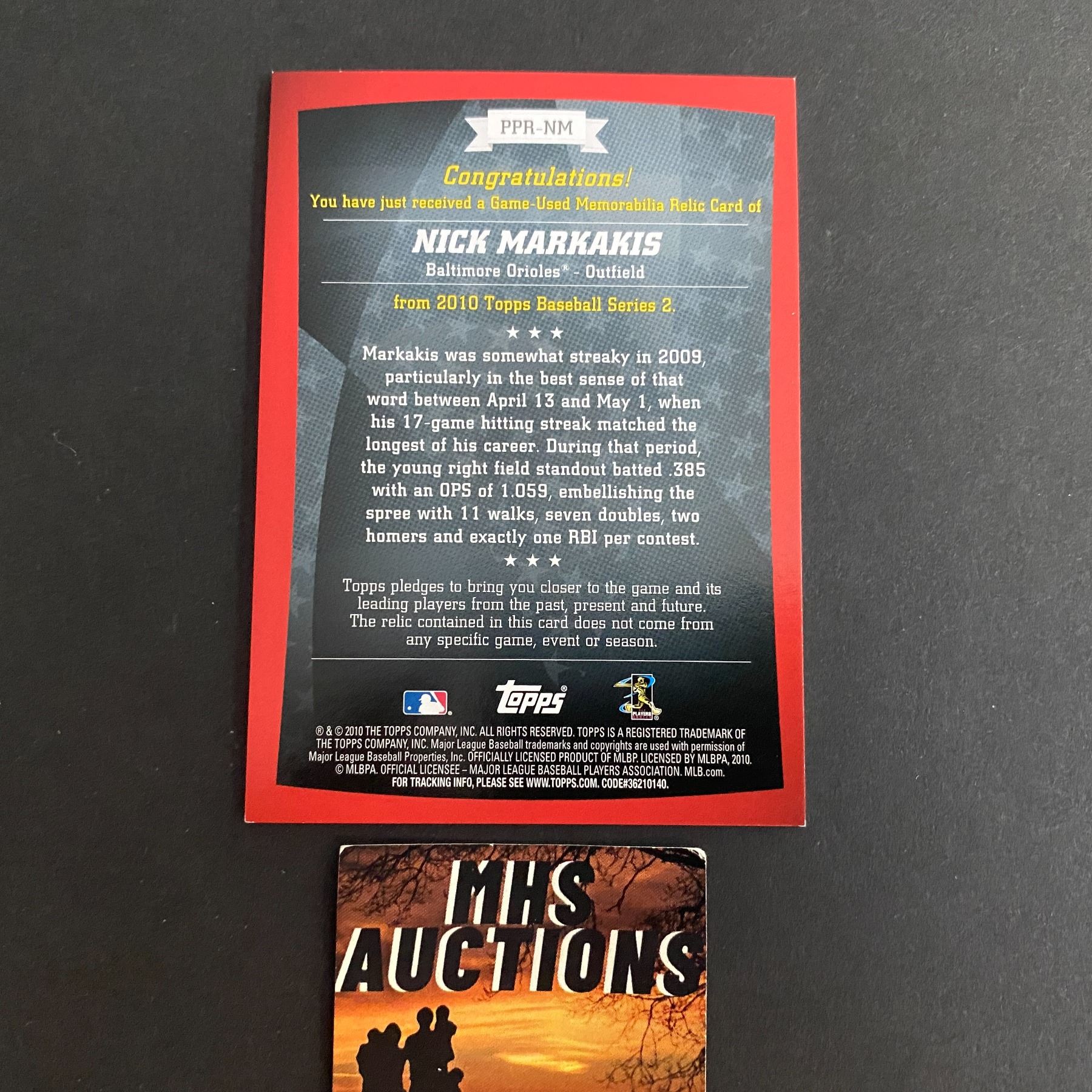 2010 TOPPS NICK MARKAKIS BASEBALL JERSEY CARD