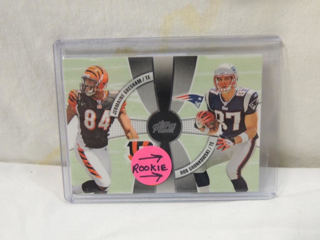 JERMAINE GRESHAM & ROB GRONKOWSKI FOOTBALL PLAYER CARDS. TRADING CARDS. COLLECTIBLE. FOOTBALL MEMORABILIA. GOOD CONDITION AS SHOWN. SEE PHOTO FOR MORE DETAILS.