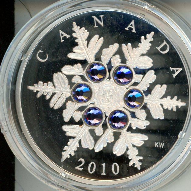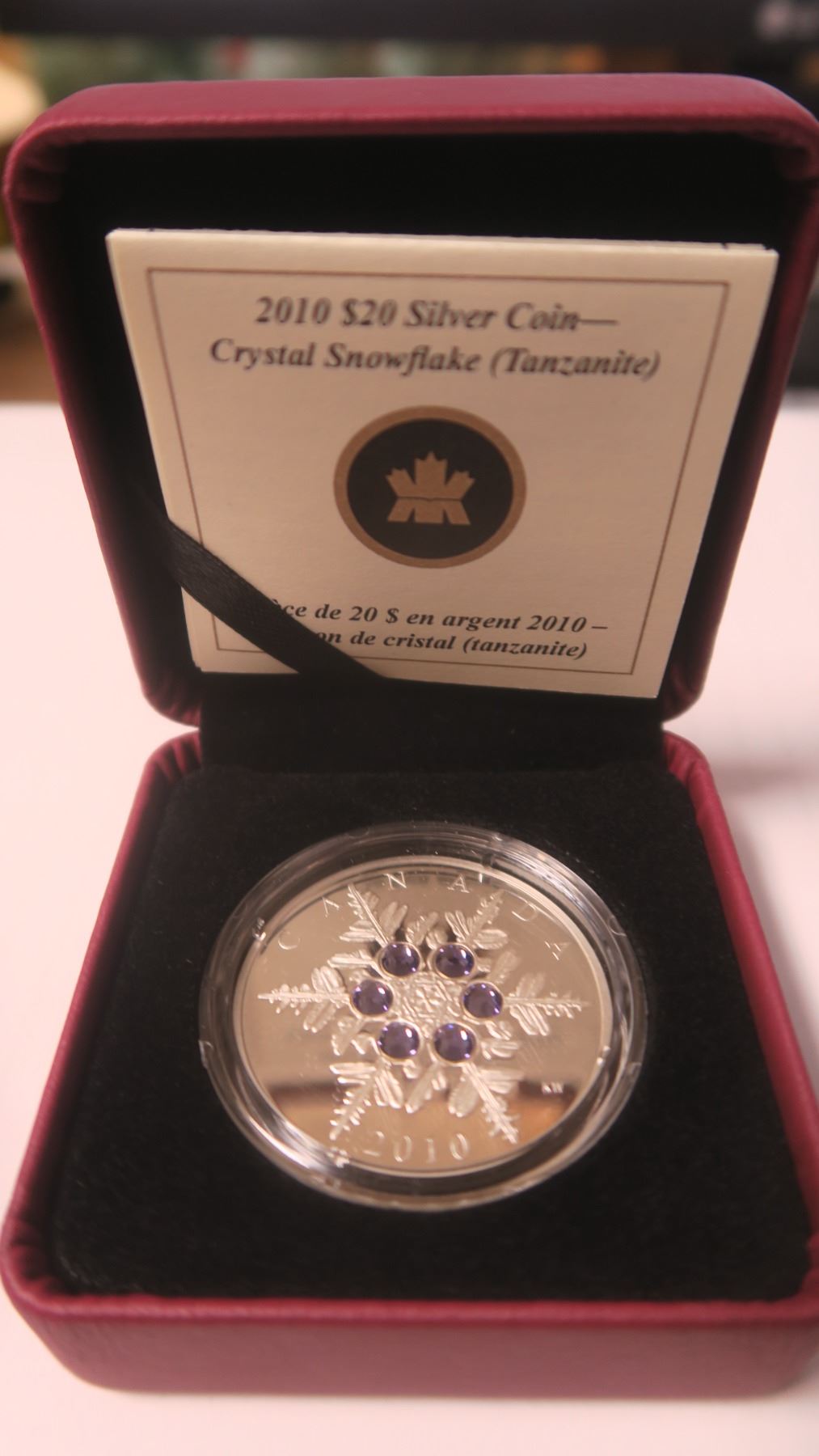 2010 Tanzanite Crystal Snowflake $20. 99.99% pure Silver with ice crystals covered in Swarovski Elements. Proof with Ultra Heavy Cameo. Housed in its original case & box of issue.