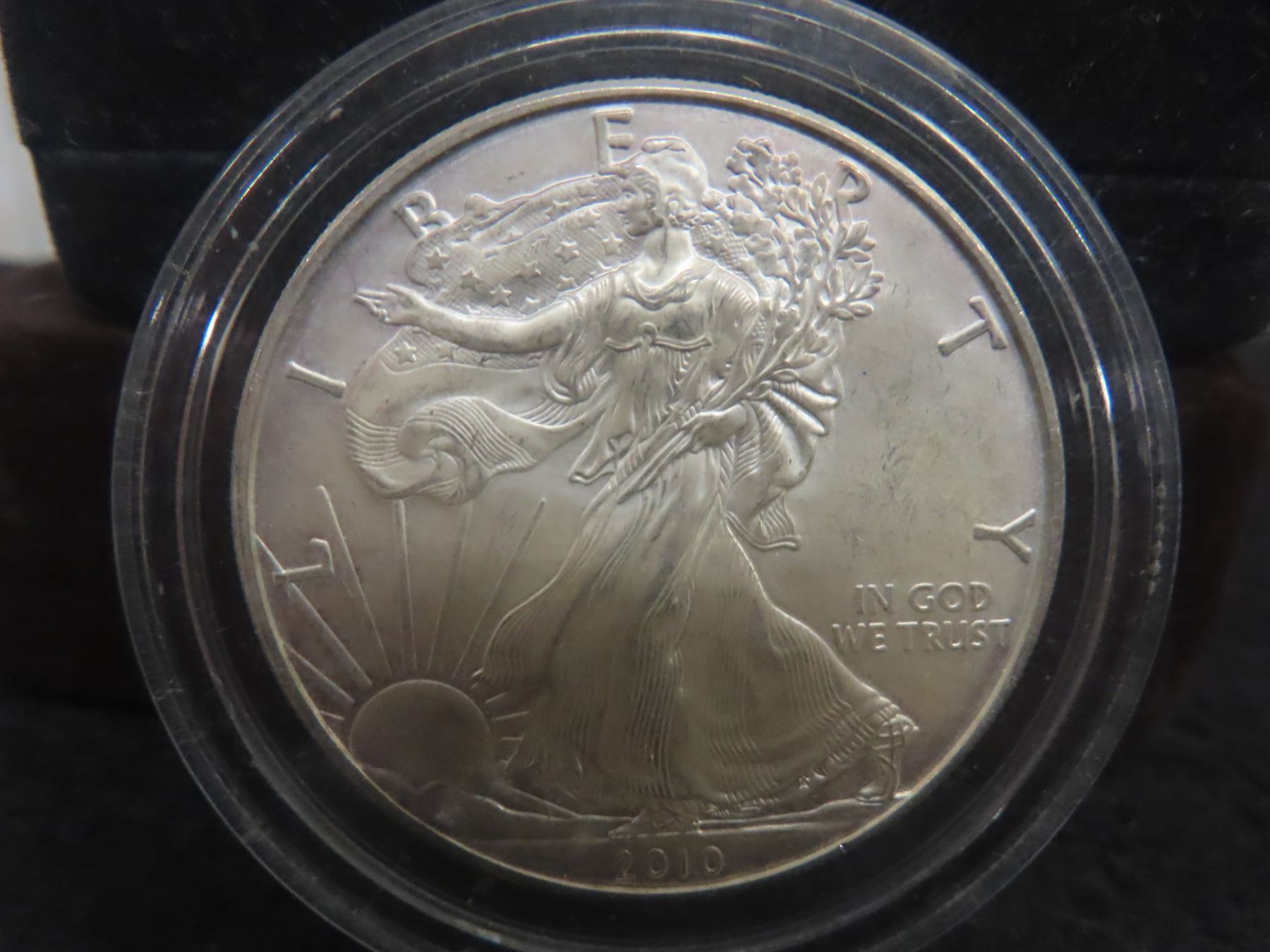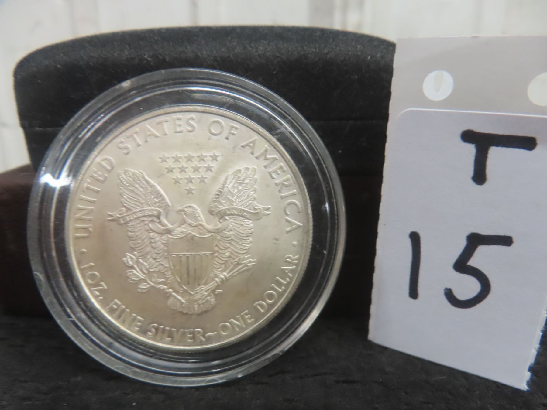One troy ounce of .999 fine silver. This American Silver Eagle features the classic Heraldic Eagle reverse design used from 1986–2021, and the Walking Liberty obverse (not shown in photos). The Silver Eagle is the most widely recognized modern bullion coin in the world, valued both for its guaranteed silver content and its collector appeal. Coin comes in a protective capsule. Condition as shown.