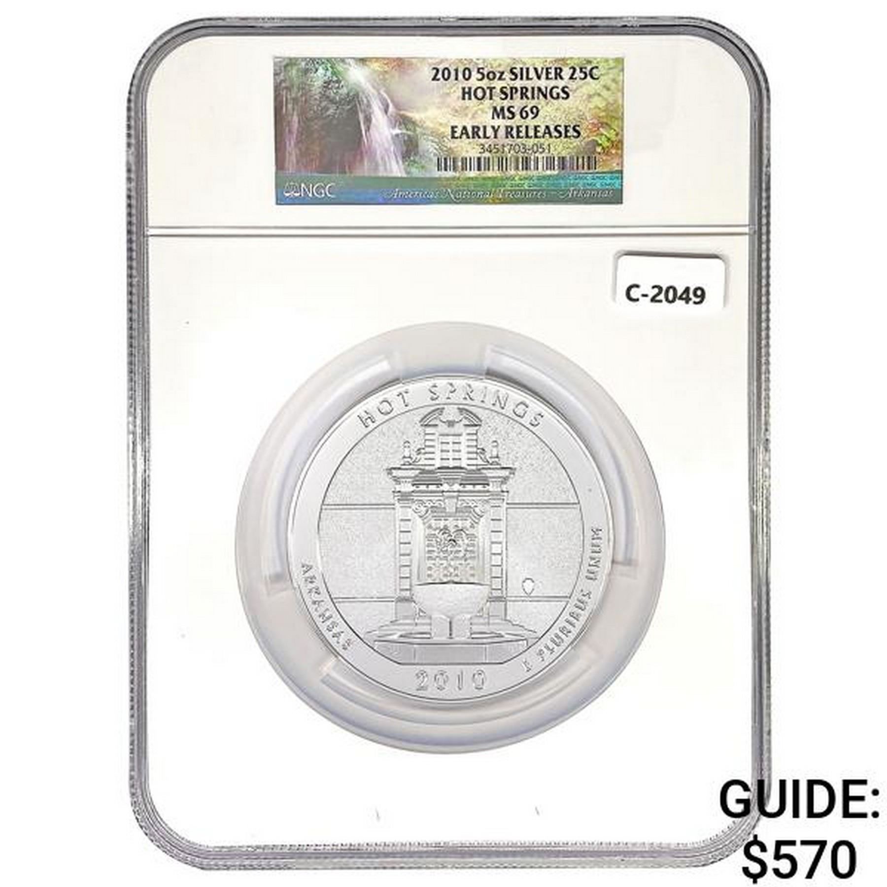2010 US 5oz Silver Hot Springs Round NGC MS69 Earl