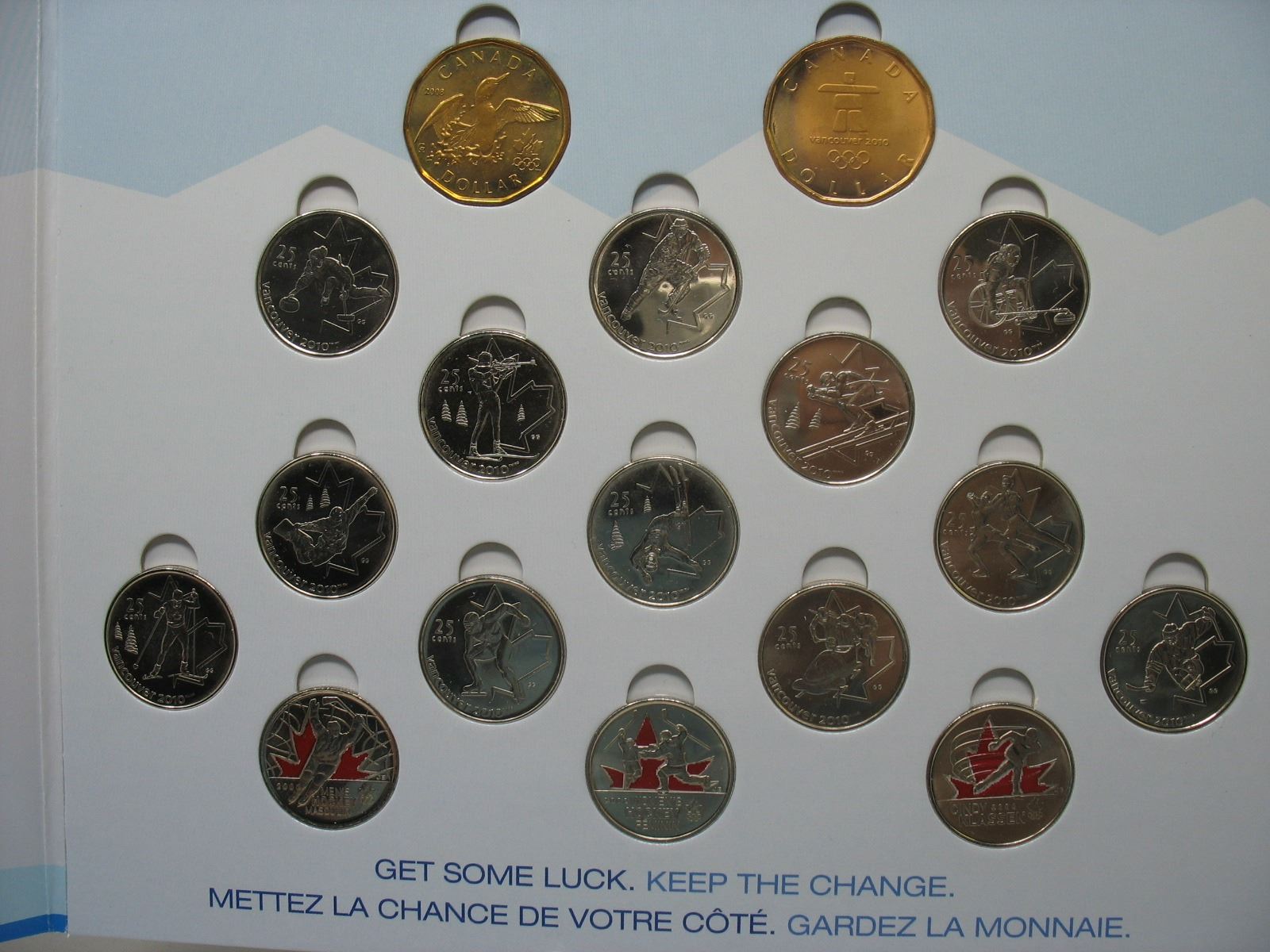 2010 VANCOUVER OLYMPICS COIN SET includes Coloured Coins and Dollar Coins