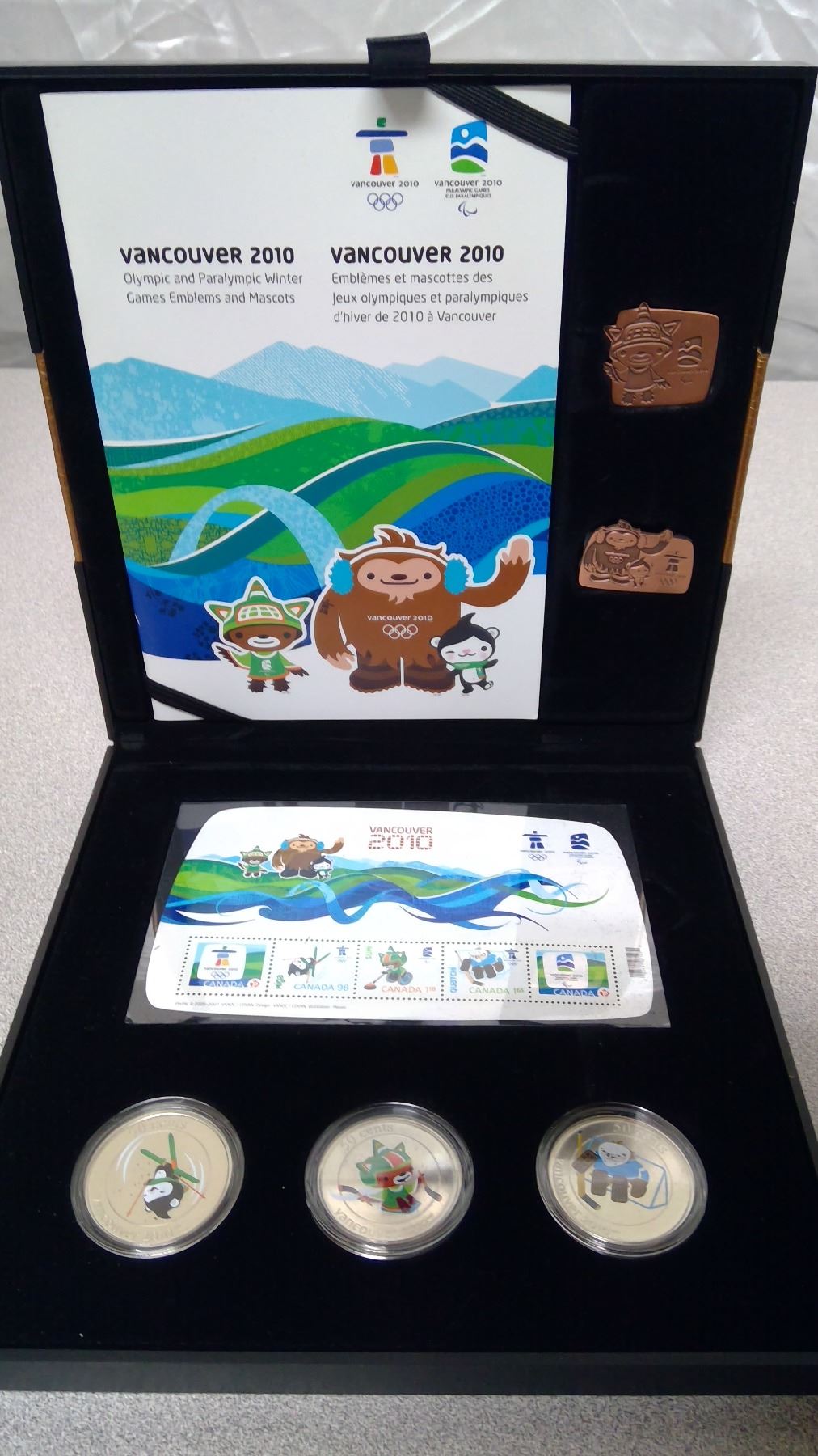 2010 Vanc. OLY. And Par Winter Games Emblems and mascots Incl. 3 coin, 2 badges and stamp