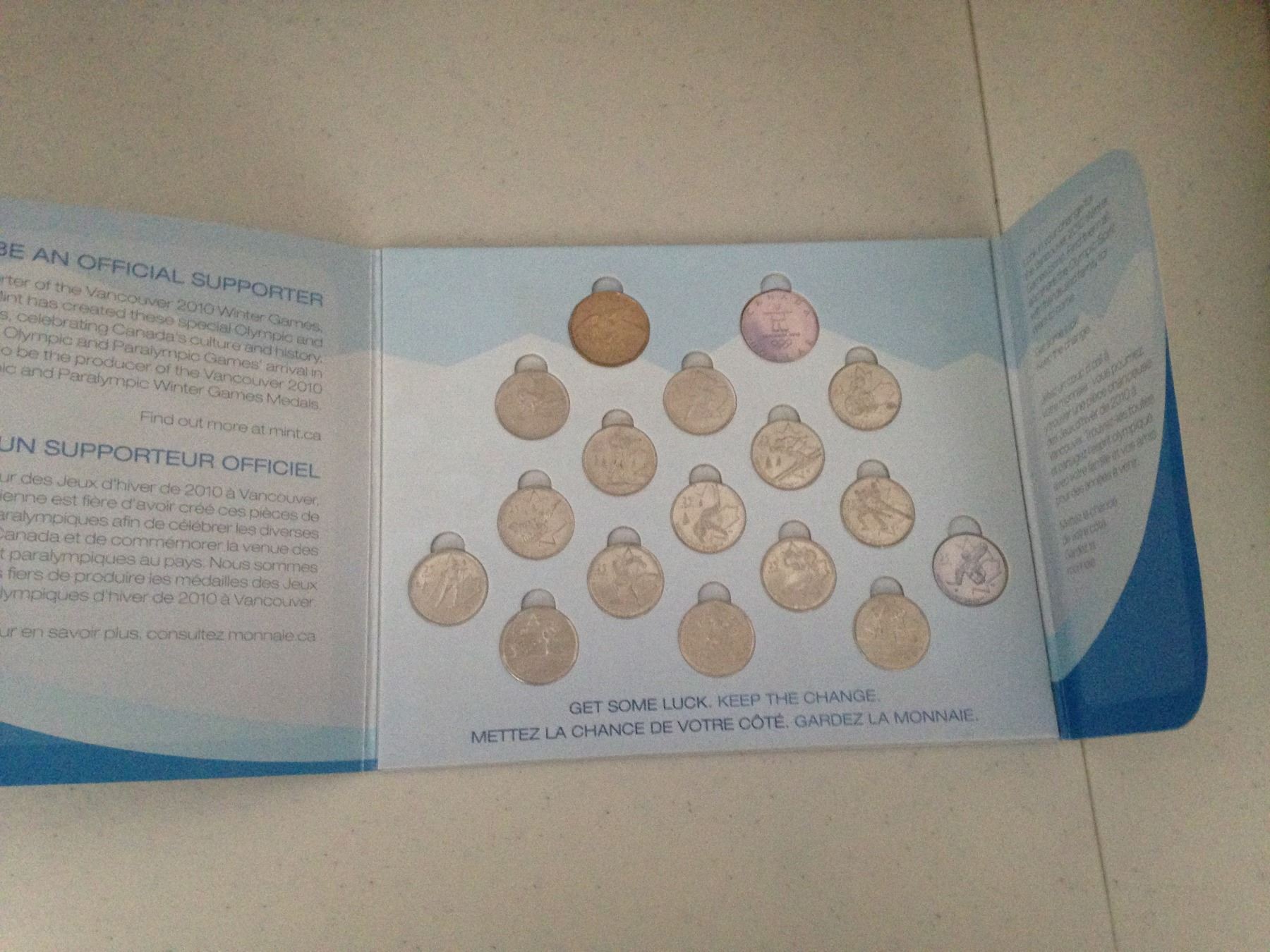 Vancouver 2010 Circulation Coins Set Card (Missing 2 coins in card)