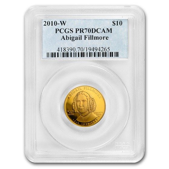 One piece 2010-W 1/2 oz Proof Gold Abigail Fillmore PR-70 PCGS
