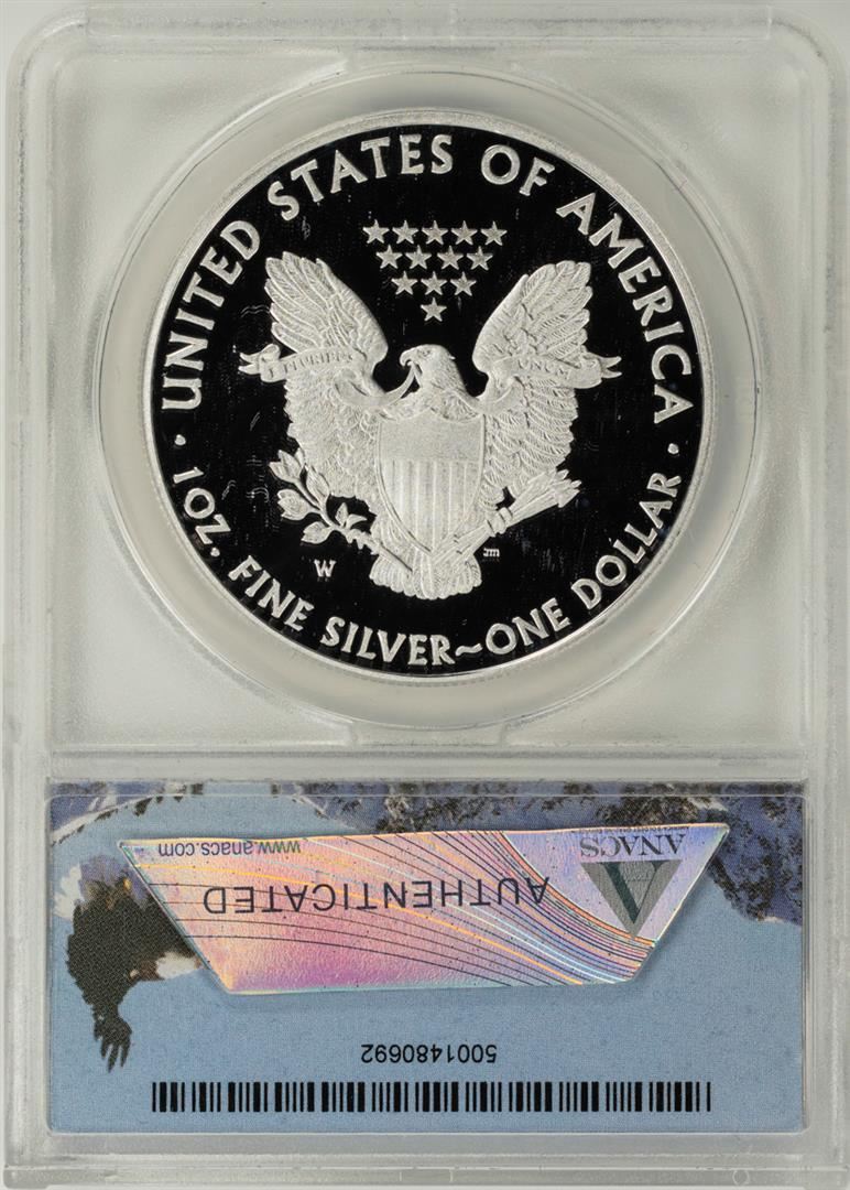 One 2010-W $1 Proof American Silver Eagle Coin ANACS PR70DCAM First Strike. ANACS Certified.