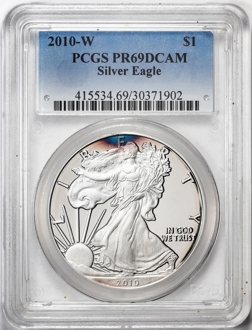 One 2010-W $1 Proof American Silver Eagle Coin PCGS PR69DCAM Nice Toning. PCGS Graded.