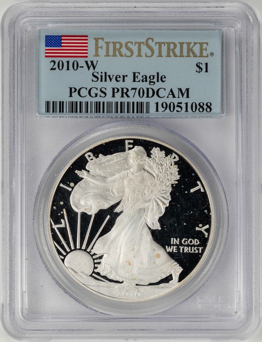 One 2010-W $1 Proof American Silver Eagle Coin PCGS PR70DCAM First Strike.