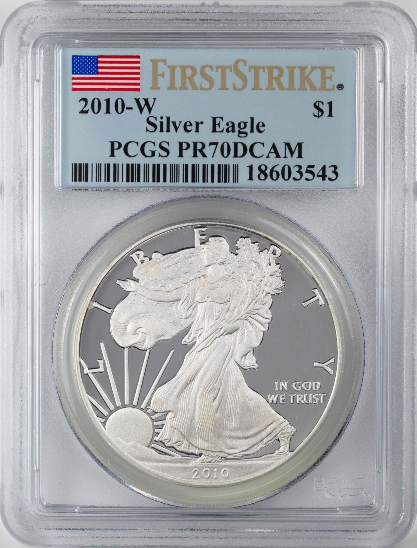 One 2010-W $1 Proof American Silver Eagle Coin PCGS PR70DCAM First Strike.