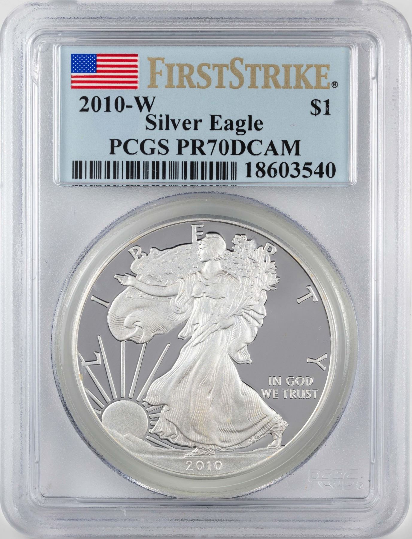 One 2010-W $1 Proof American Silver Eagle Coin PCGS PR70DCAM First Strike.