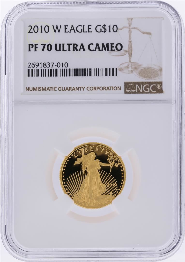One 2010-W $10 American Gold Eagle Coin NGC Graded PF70 Ultra Cameo. NGC Certified.