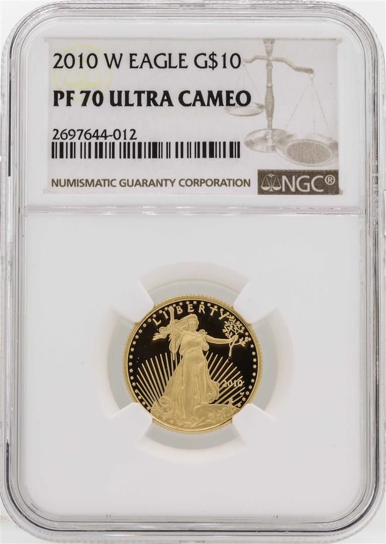 One 2010-W $10 American Gold Eagle Proof Coin PCGS PF70 Ultra Cameo. PCGS Graded.