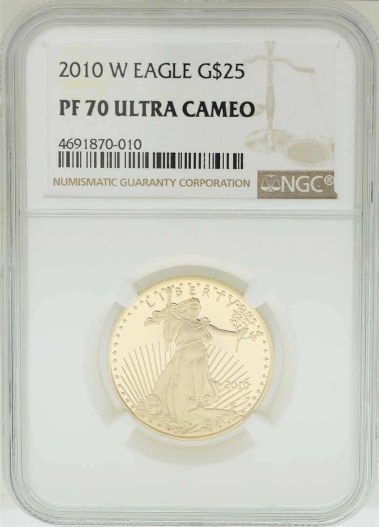 One 2010-W $25 American Gold Eagle Coin NGC PF70 Ultra Cameo. NGC Certified.