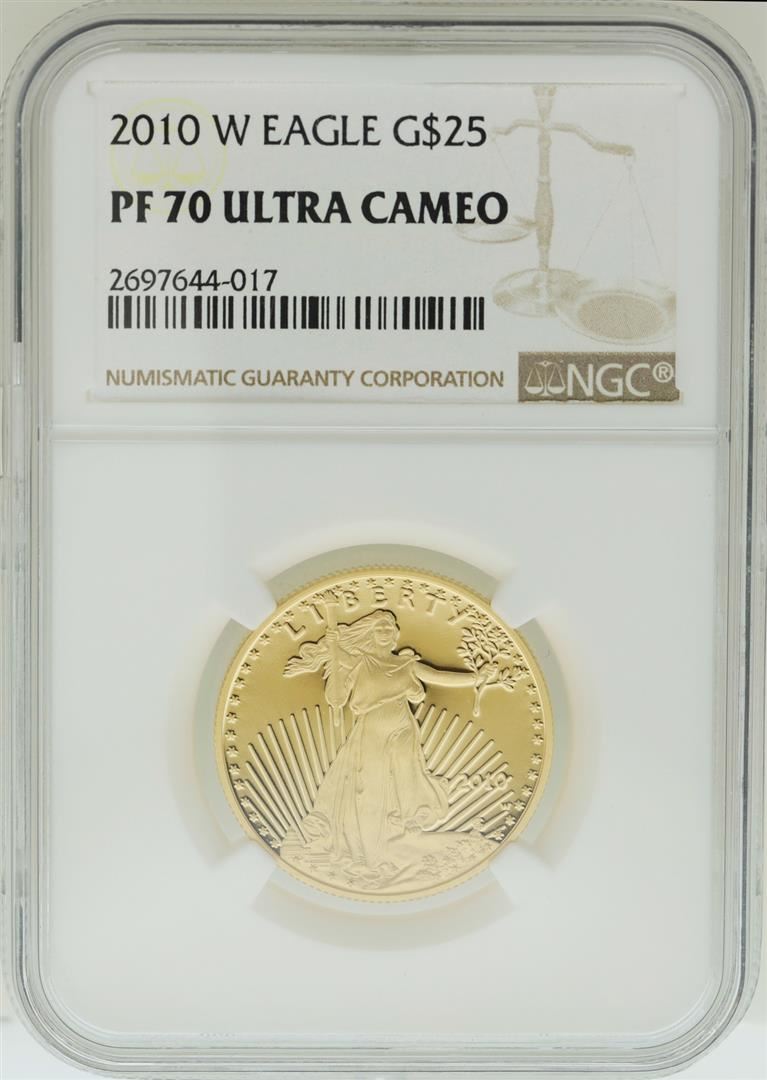 One 2010-W $25 American Gold Eagle Coin NGC PF70 Ultra Cameo. NGC Certified.