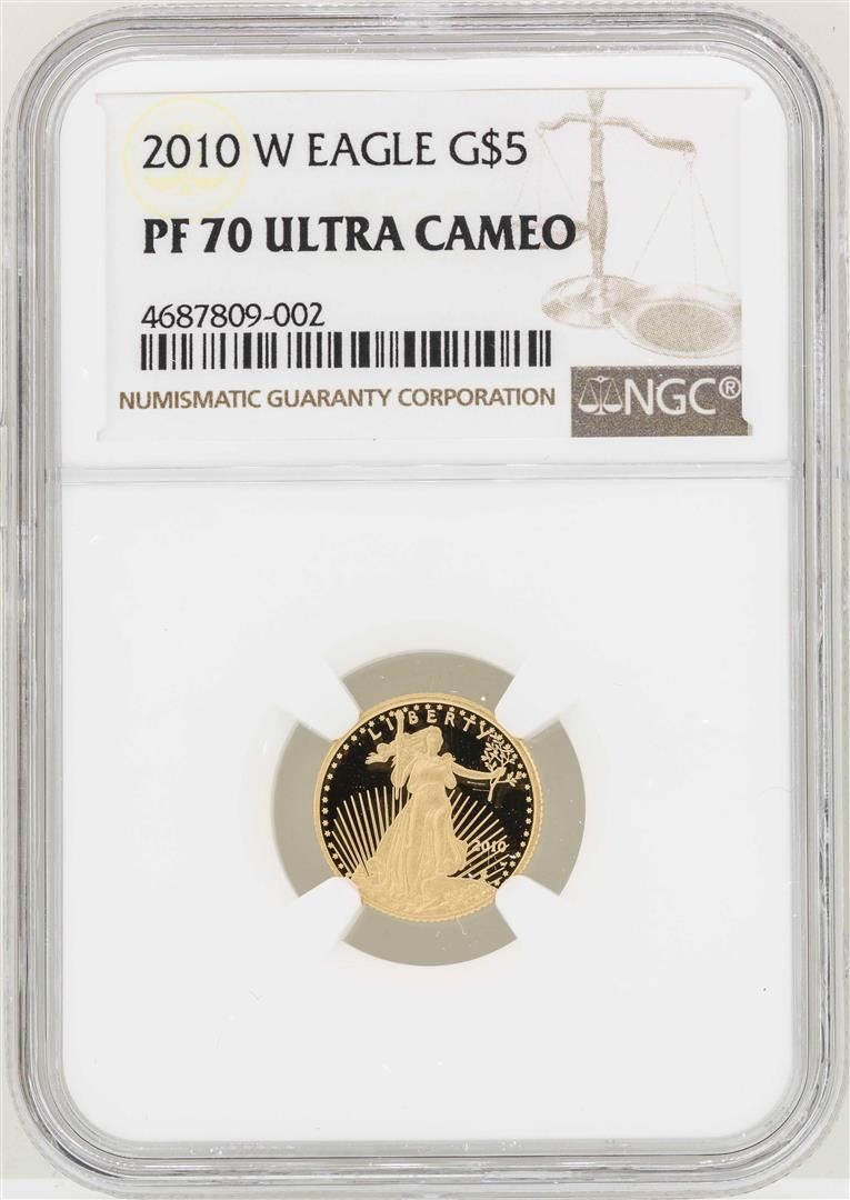 One 2010-W $5 American Gold Eagle Coin NGC PF70 Ultra Cameo. NGC Certified.