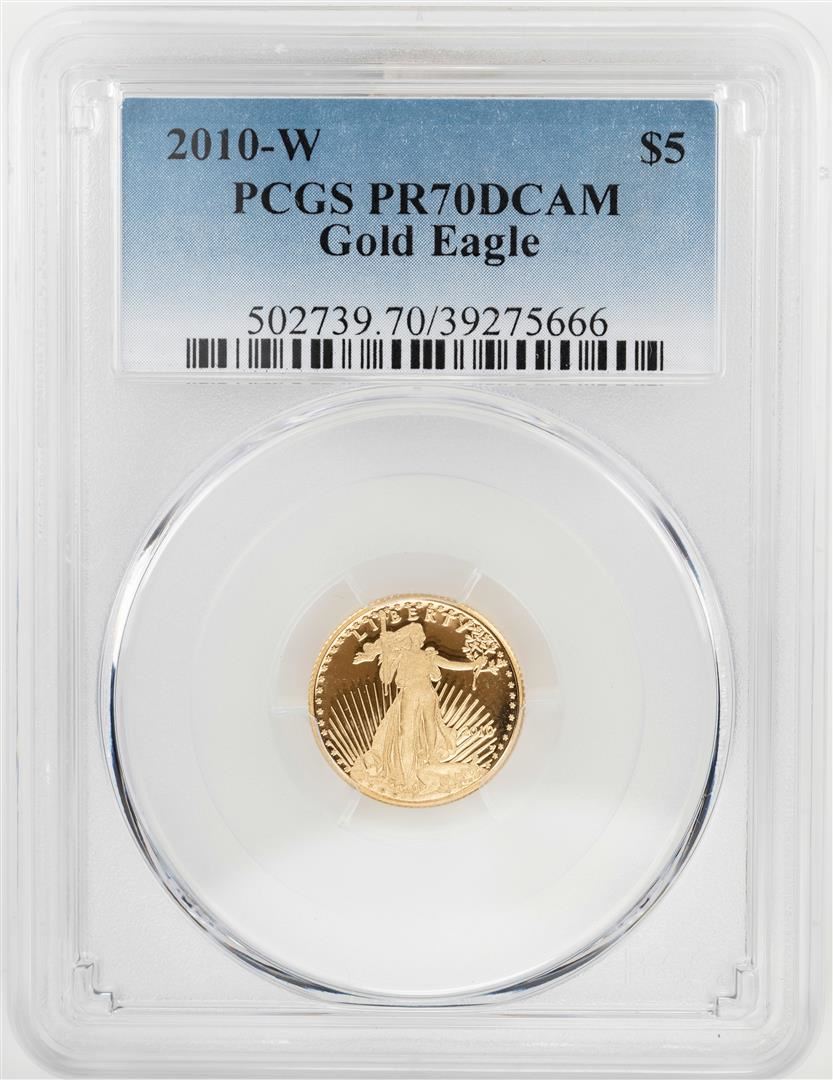 One 2010-W $5 Proof American Gold Eagle Coin PCGS PR70DCAM. PCGS Graded.