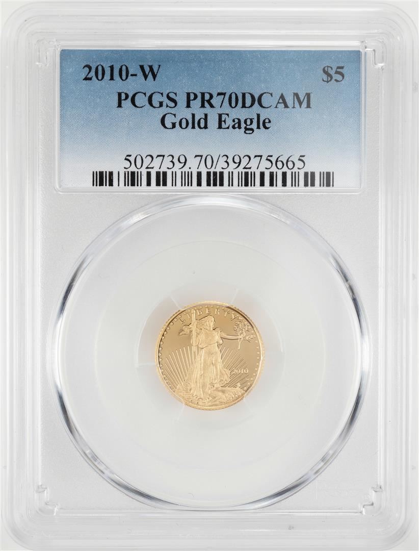 One 2010-W $5 Proof American Gold Eagle Coin PCGS PR70DCAM. PCGS Graded.