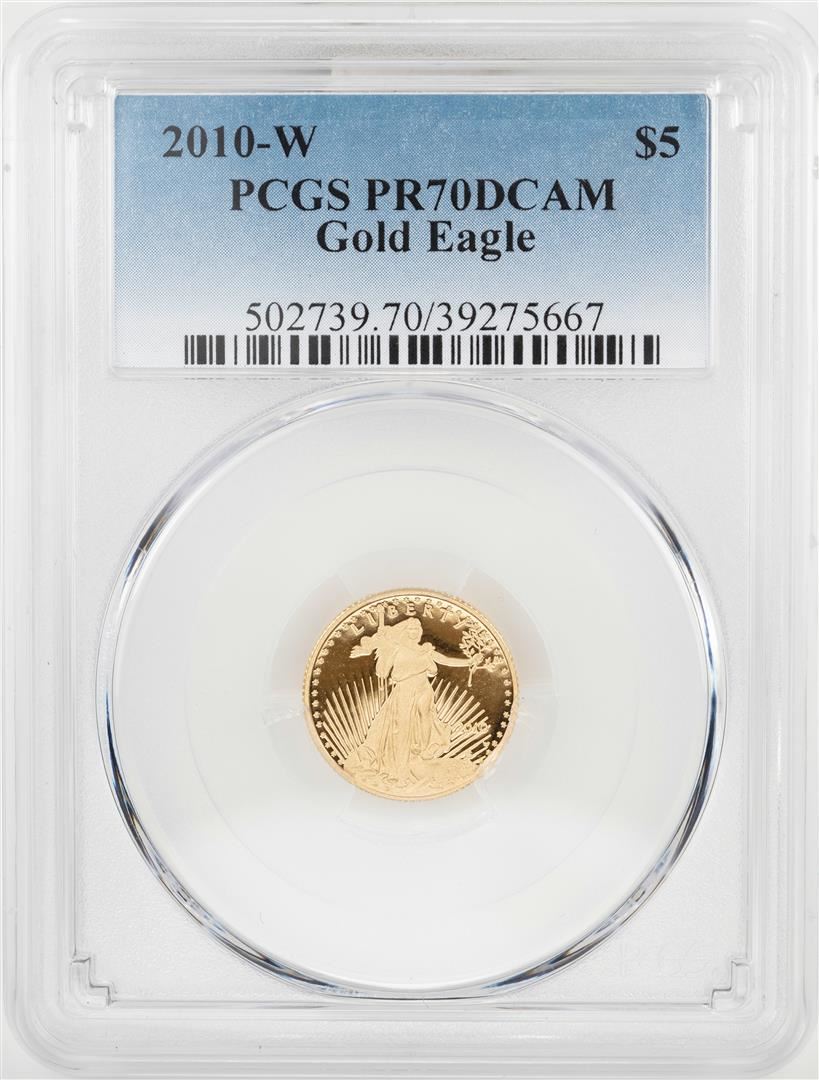 One 2010-W $5 Proof American Gold Eagle Coin PCGS PR70DCAM. PCGS Graded.