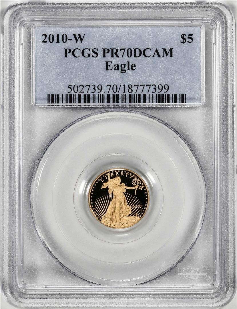 One 2010-W $5 Proof American Gold Eagle Coin PCGS PR70DCAM. PCGS Graded.