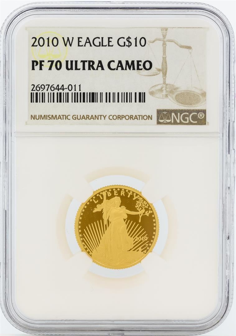 One 2010-W NGC PF 70 Ultra Cameo $10 Liberty Eagle Gold Coin.