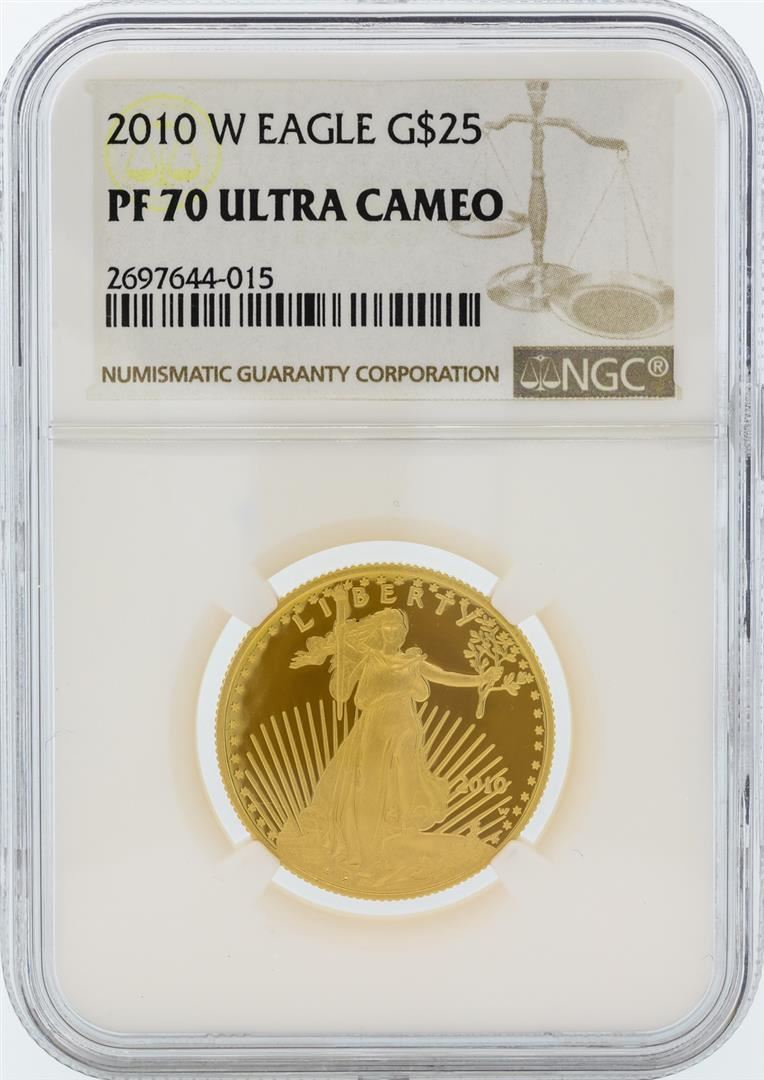 One 2010-W NGC PF 70 Ultra Cameo $25 American Eagle Gold Coin.