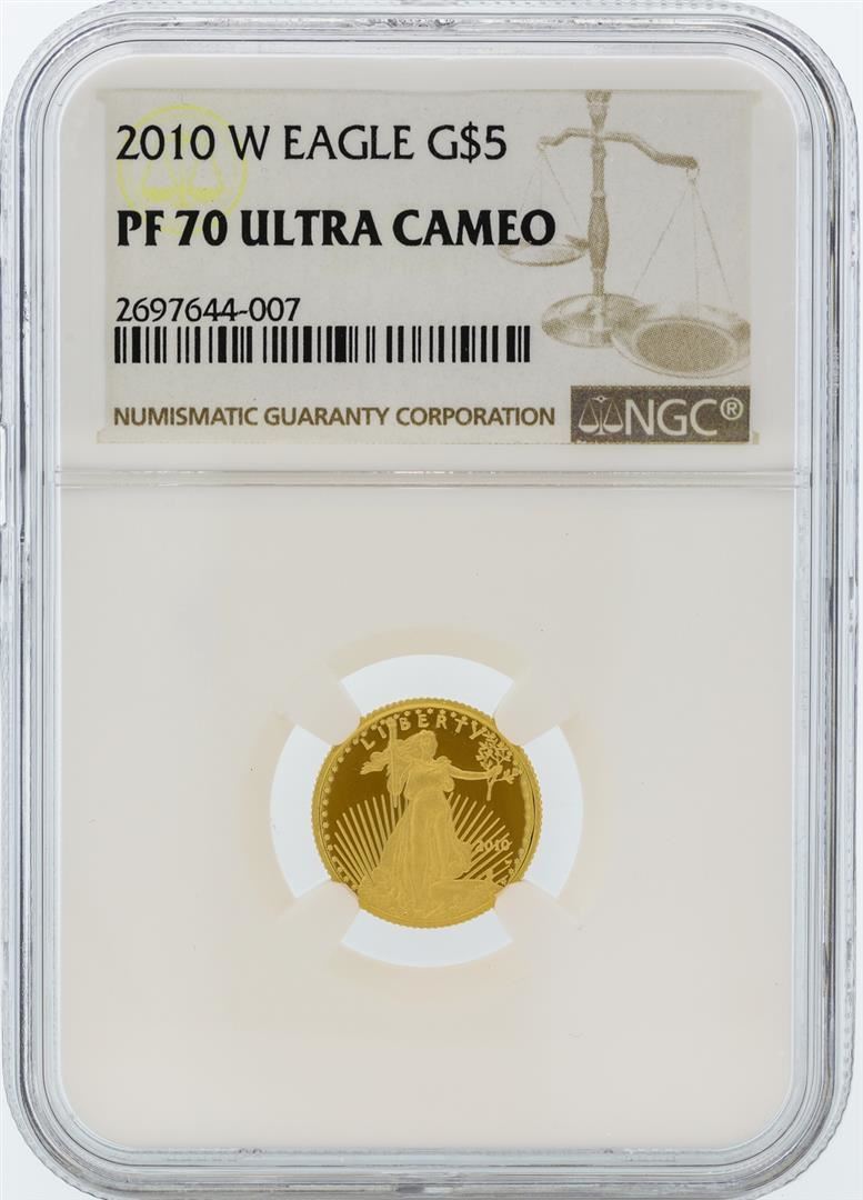 One 2010-W NGC PF 70 Ultra Cameo $5 Liberty Half Eagle Gold Coin.
