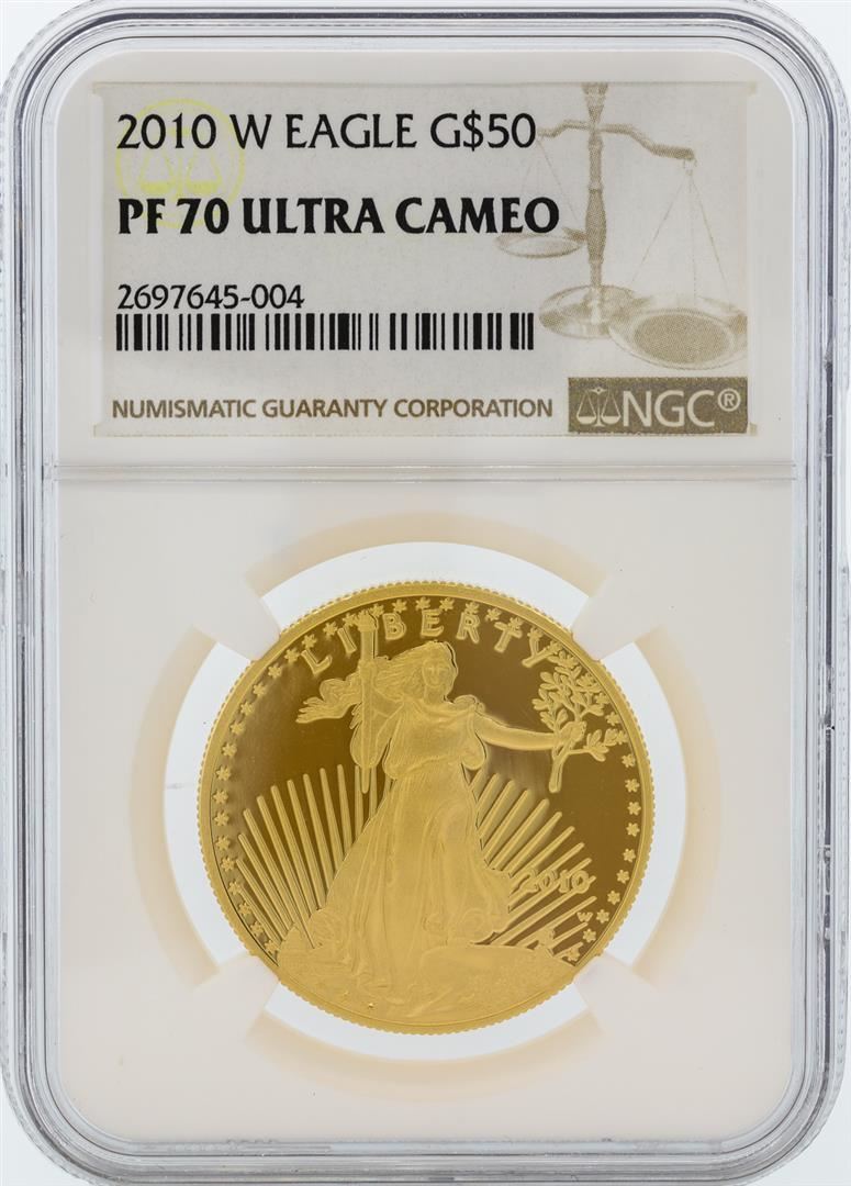 One 2010-W NGC PF 70 Ultra Cameo $50 American Eagle Gold Coin.