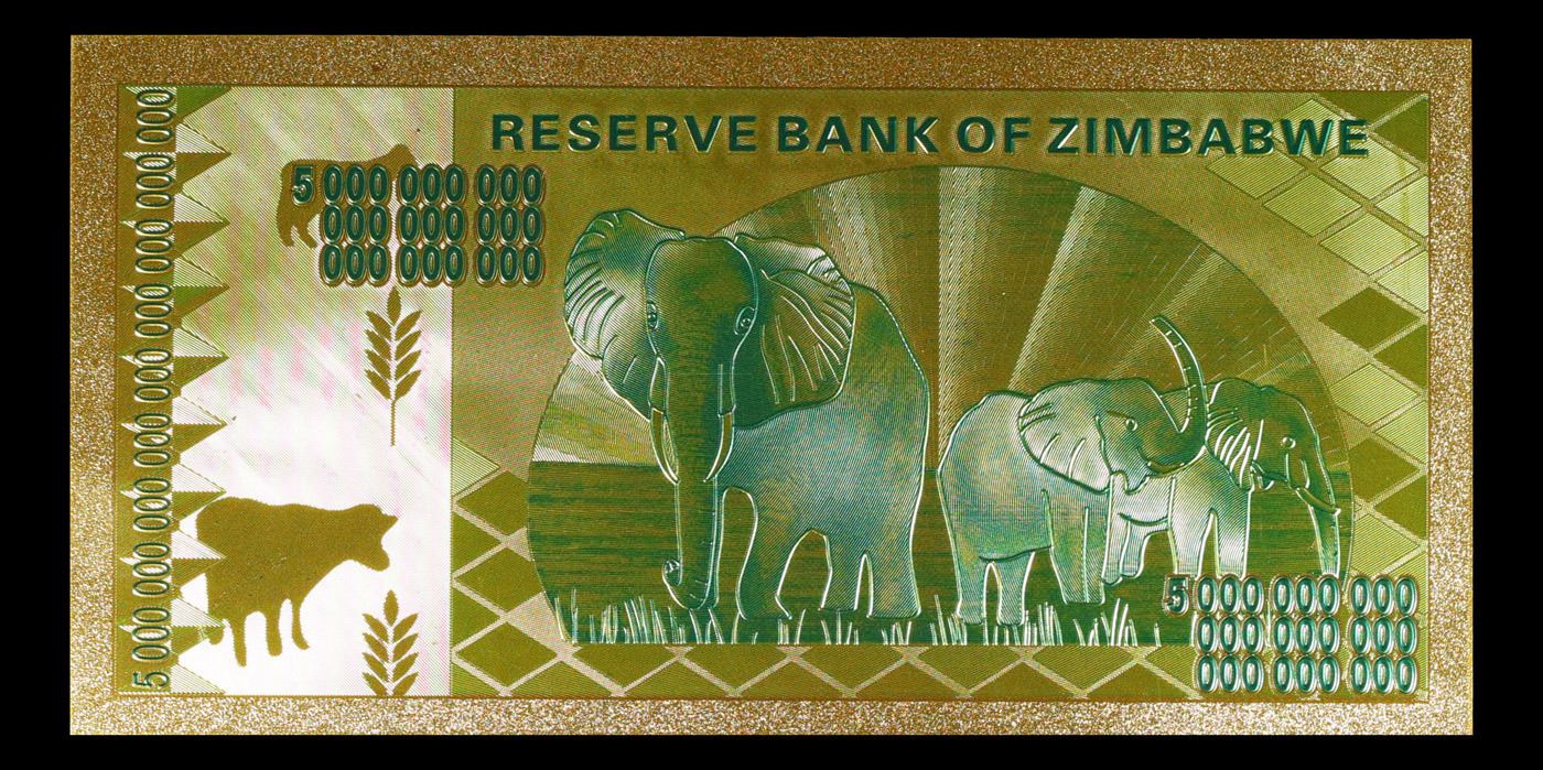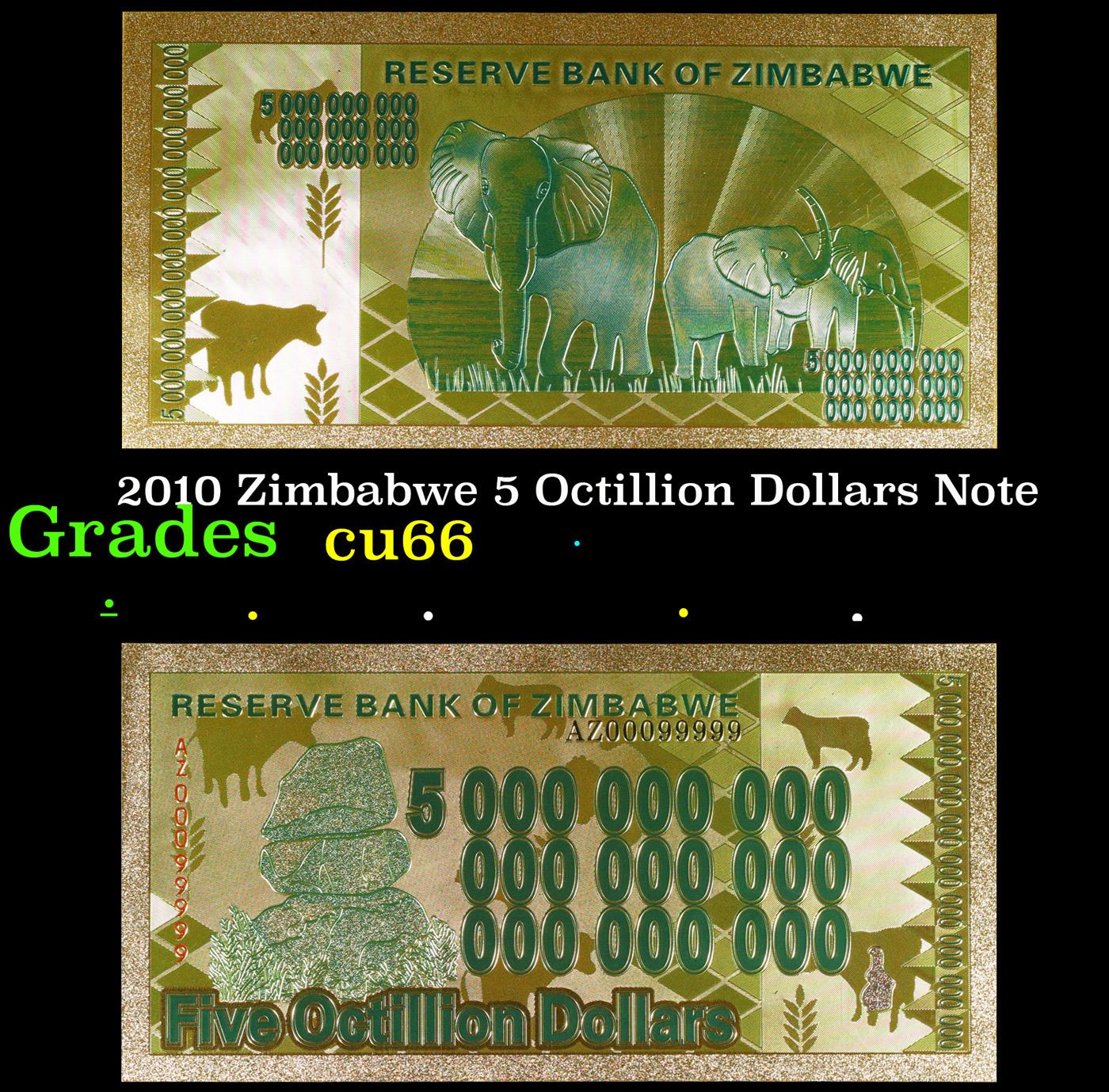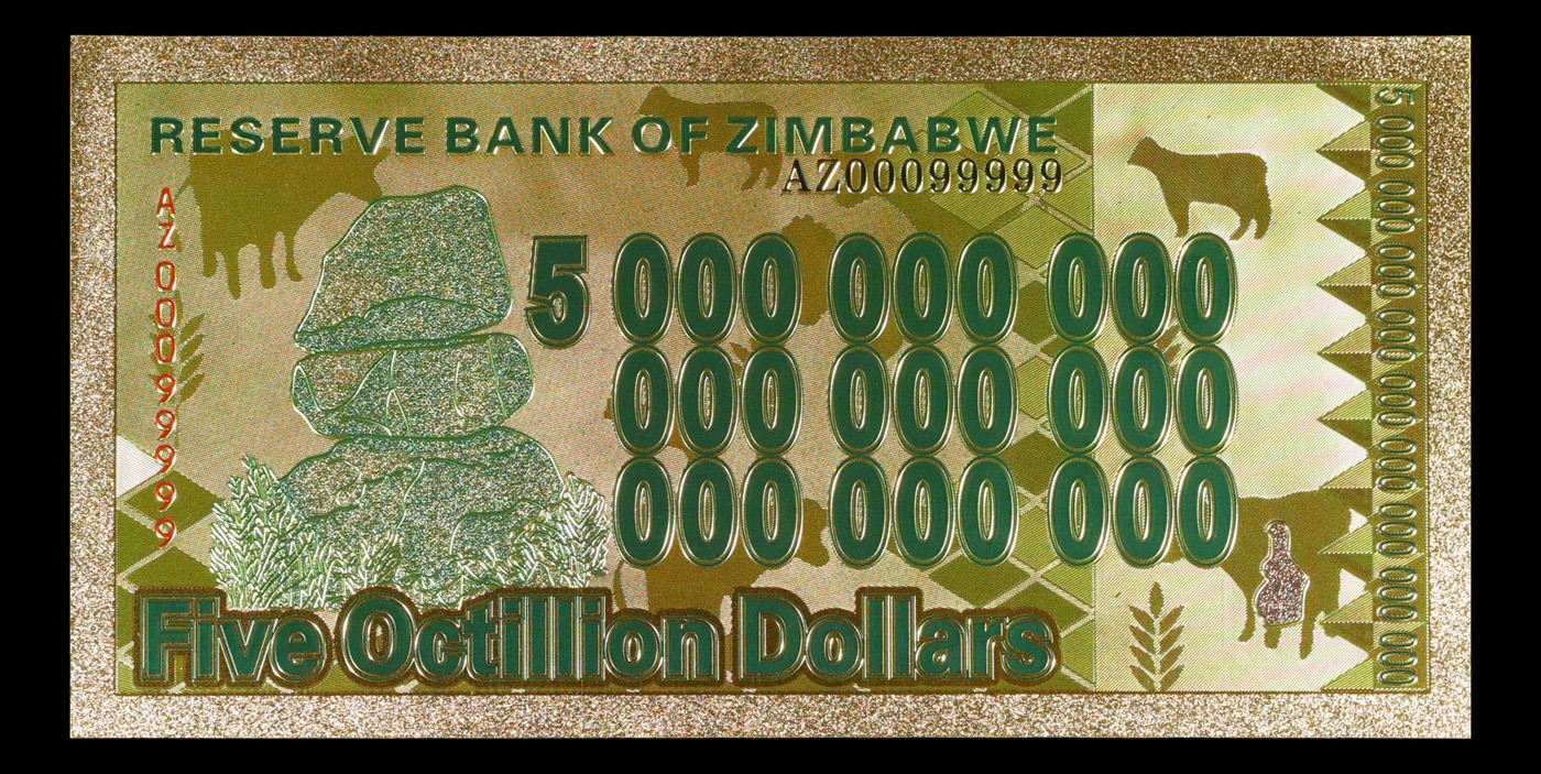 2010 Zimbabwe 5 Octillion Dollars Note Grades Gem+ CU.