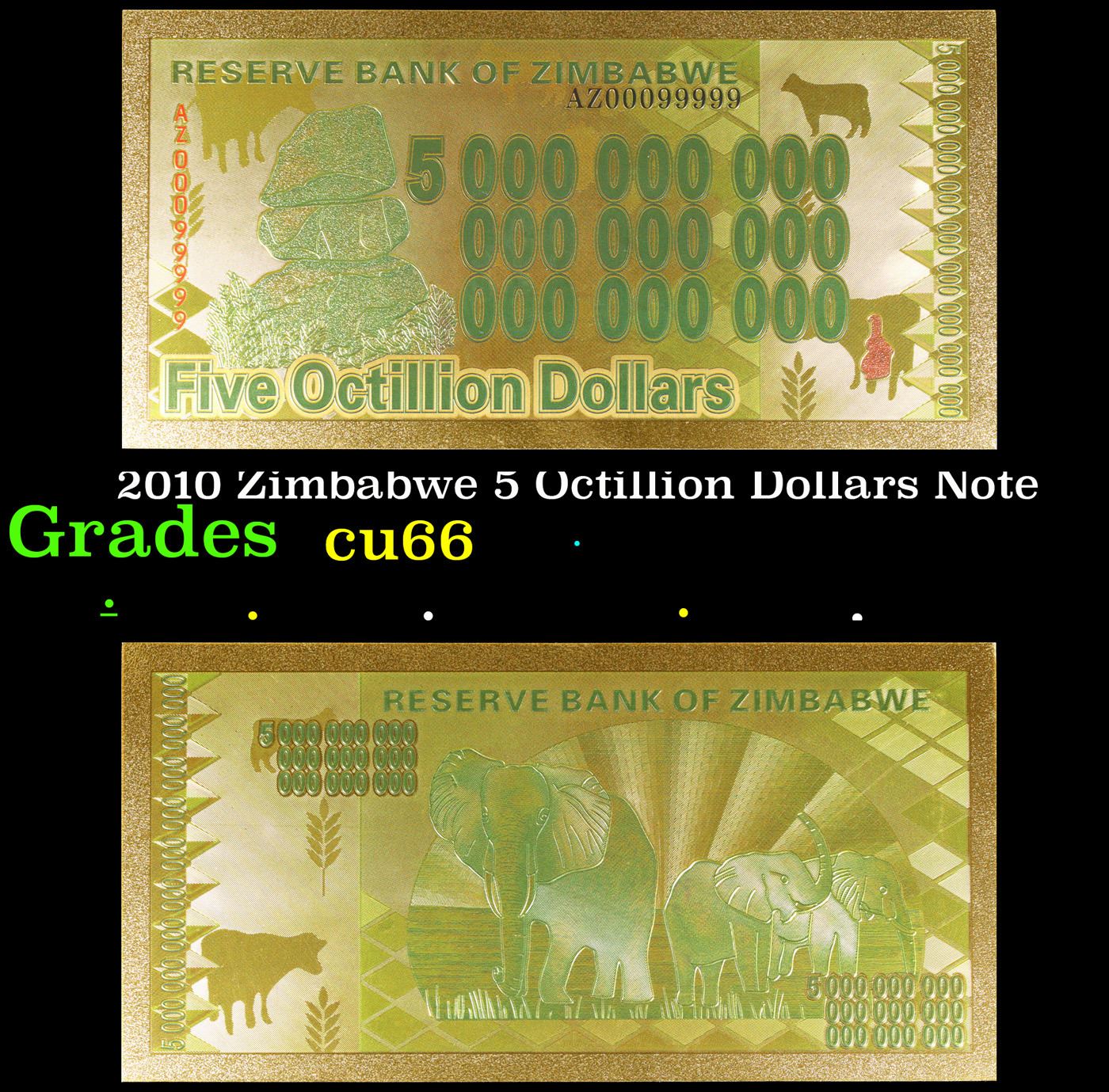 2010 Zimbabwe 5 Octillion Dollars Note Grades Gem+ CU.