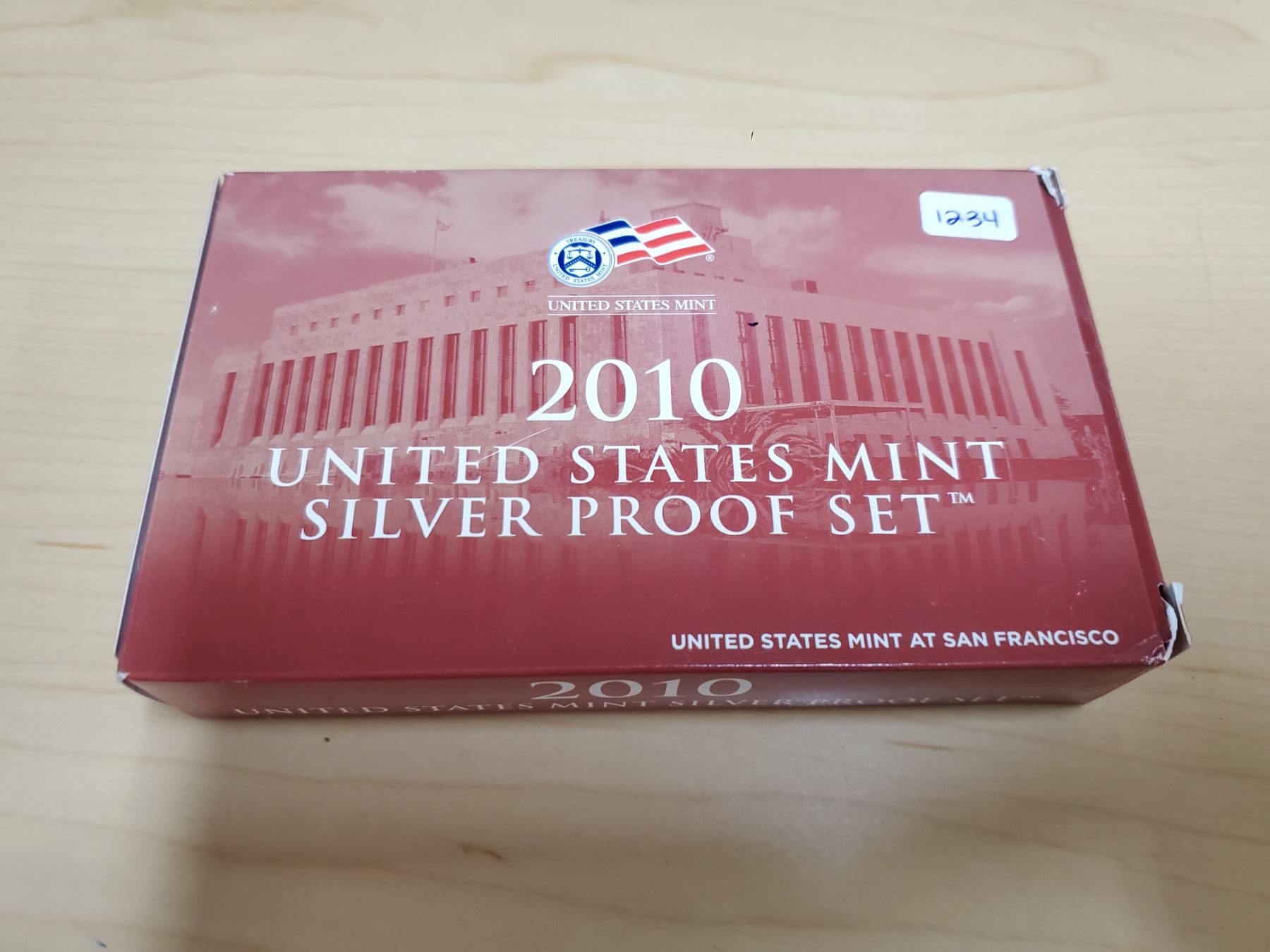 2010S United States Mint Silver Proof Set. 14-coin San Francisco Mint set includes 5-coin Silver Proof Set, 4-coin Presidential Dollars (Fillmore, Pierce, Buchanan & Lincoln), and 5 National Parks Silver Quarters (Hot Springs, Yellowstone, Yosemite, Grand Canyon & Mount Hood). Housed in their original cases and box of issue.