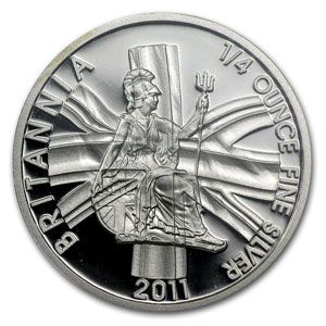 2011 1/4 oz Silver Britannia PF-70 UCAM NGC **|**|** This 1/4 oz Silver Britannia coin is a Silver treasure for both its beauty and Silver value. Produced by the Royal Mint, the 2011 Silver Britannia coin is UK legal tender and has a face value of 50 pence. This beautiful example has been graded Proof 70 Ul ; MSRP: $400