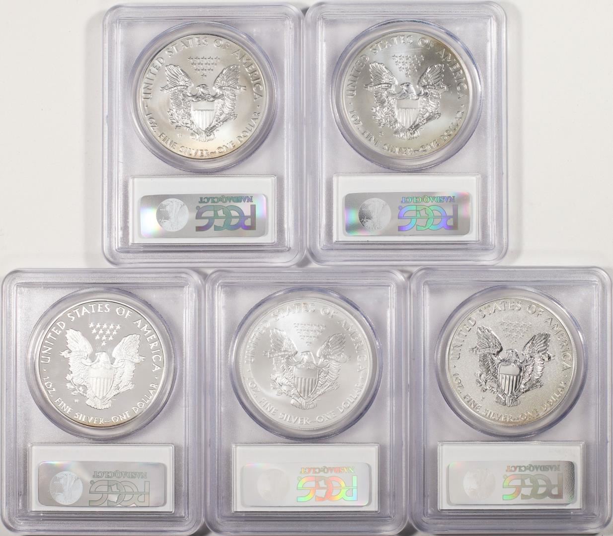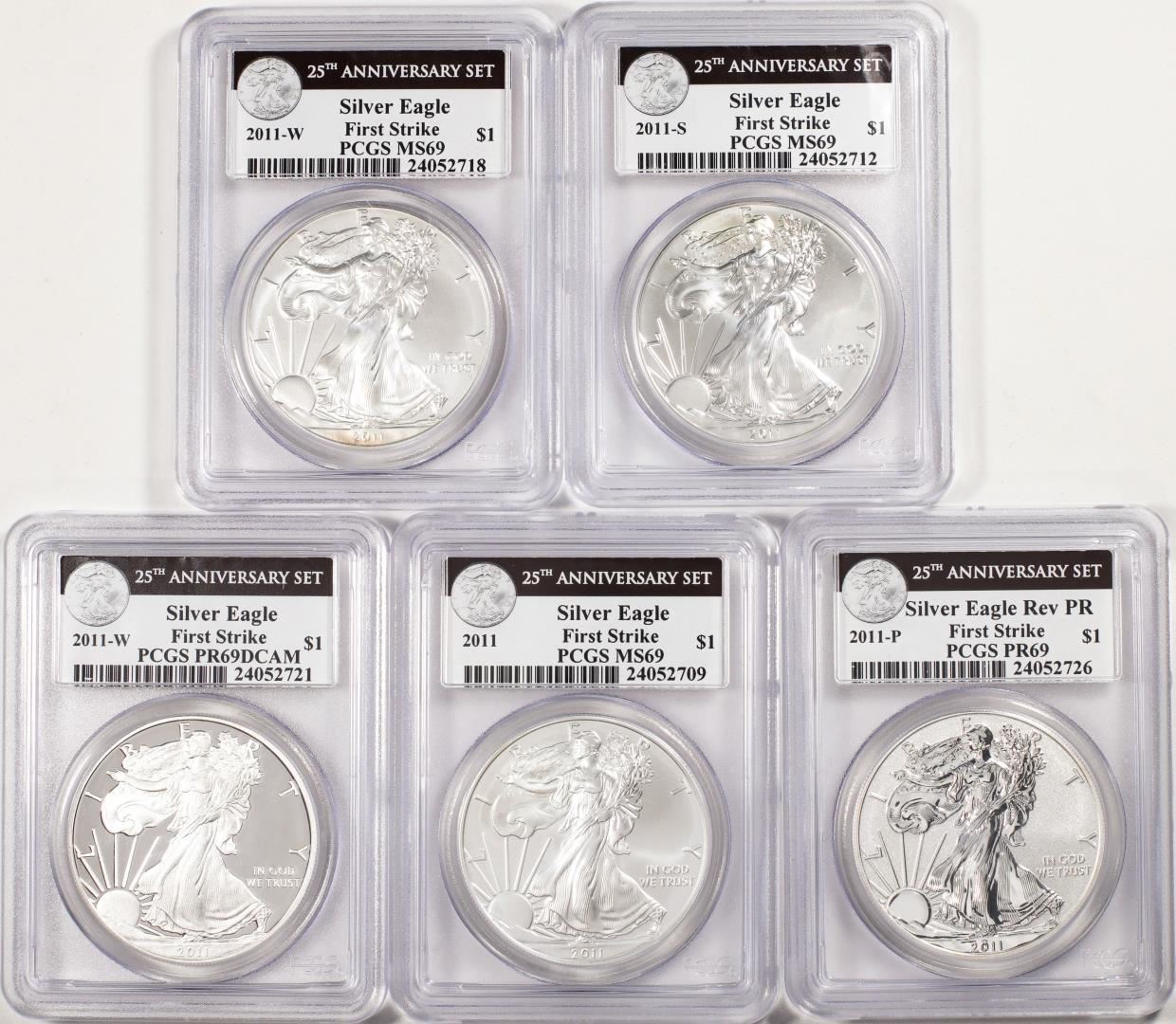 One 2011 $1 American Silver Eagle (5) Coin 25th Anniv. Set PCGS MS69/PR69 First Strike. PCGS Graded.