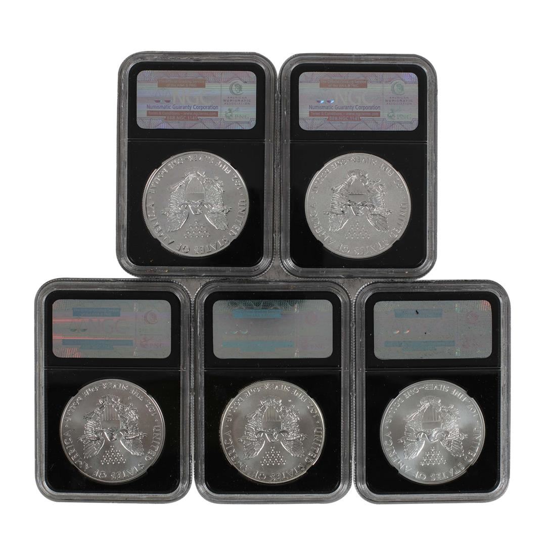 One 2011 $1 American Silver Eagle (5) Coin Set NGC Graded. NGC Certified.