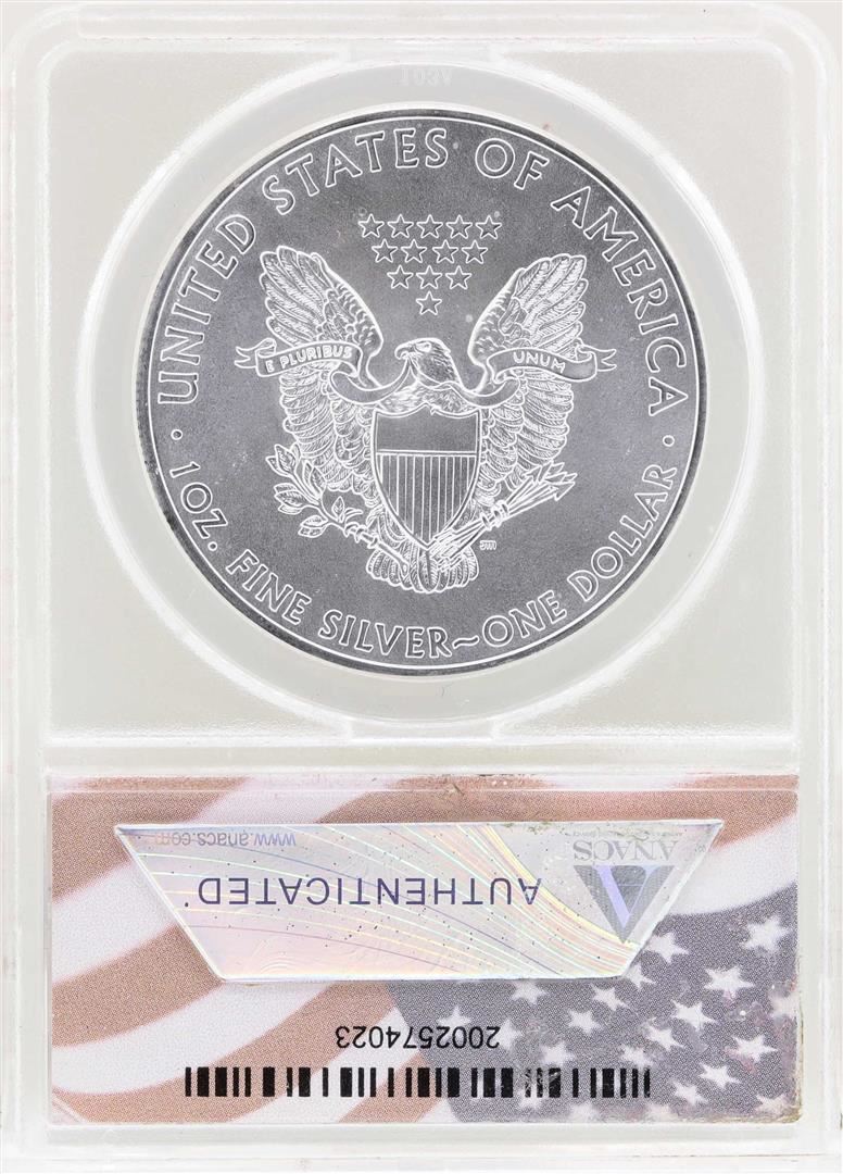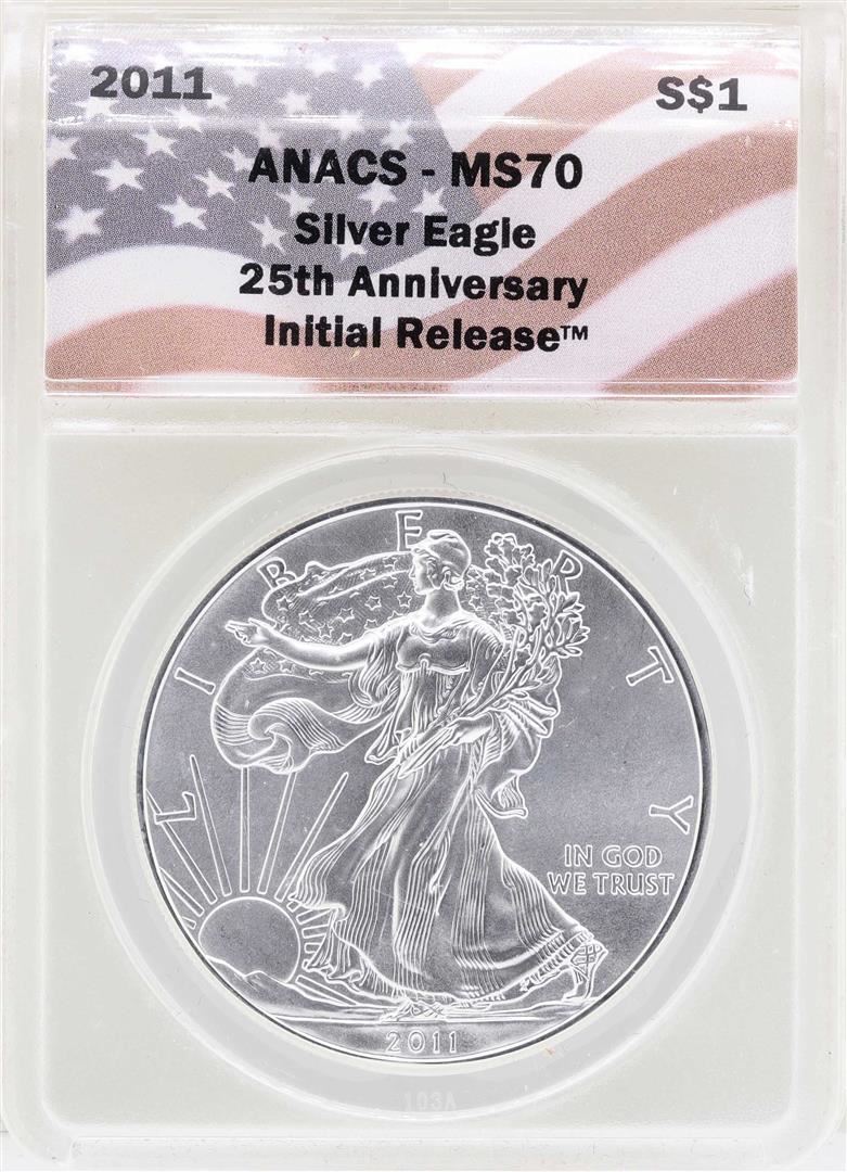 One 2011 $1 American Silver Eagle Coin ANACS MS70. ANACS Certified.