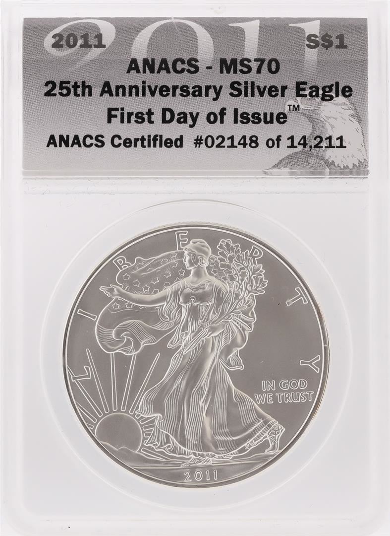 2011 $1 American Silver Eagle Coin First Day of Issue ANACS MS70