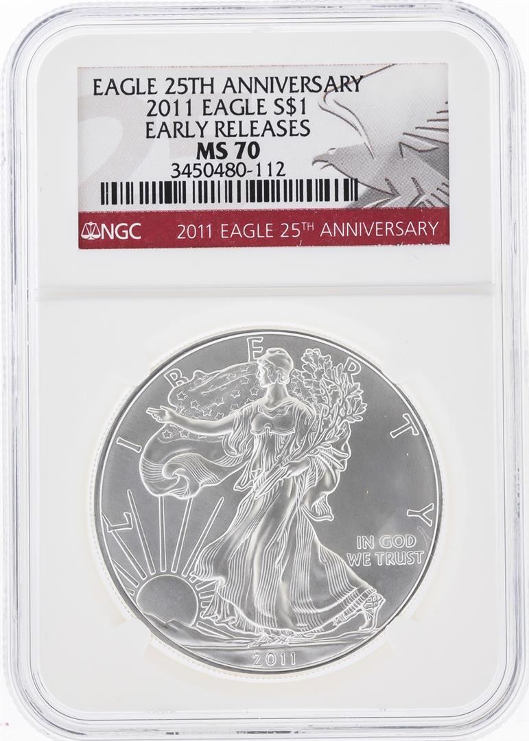 One 2011 $1 American Silver Eagle Coin NGC Graded MS70. NGC Certified.