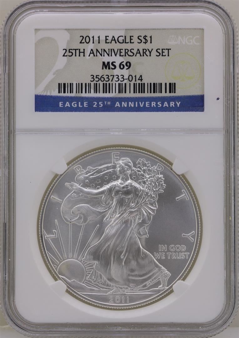 One 2011 $1 American Silver Eagle Coin NGC MS69 Early Strikes. NGC Certified.