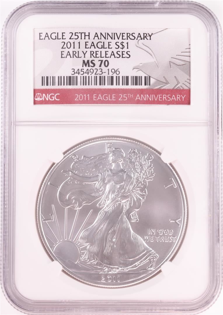 One 2011 $1 American Silver Eagle Coin NGC MS70 Early Releases. NGC Certified.