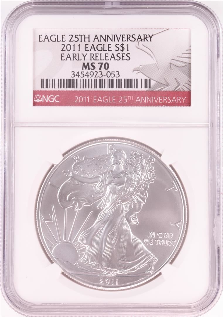 One 2011 $1 American Silver Eagle Coin NGC MS70 Early Releases. NGC Certified.