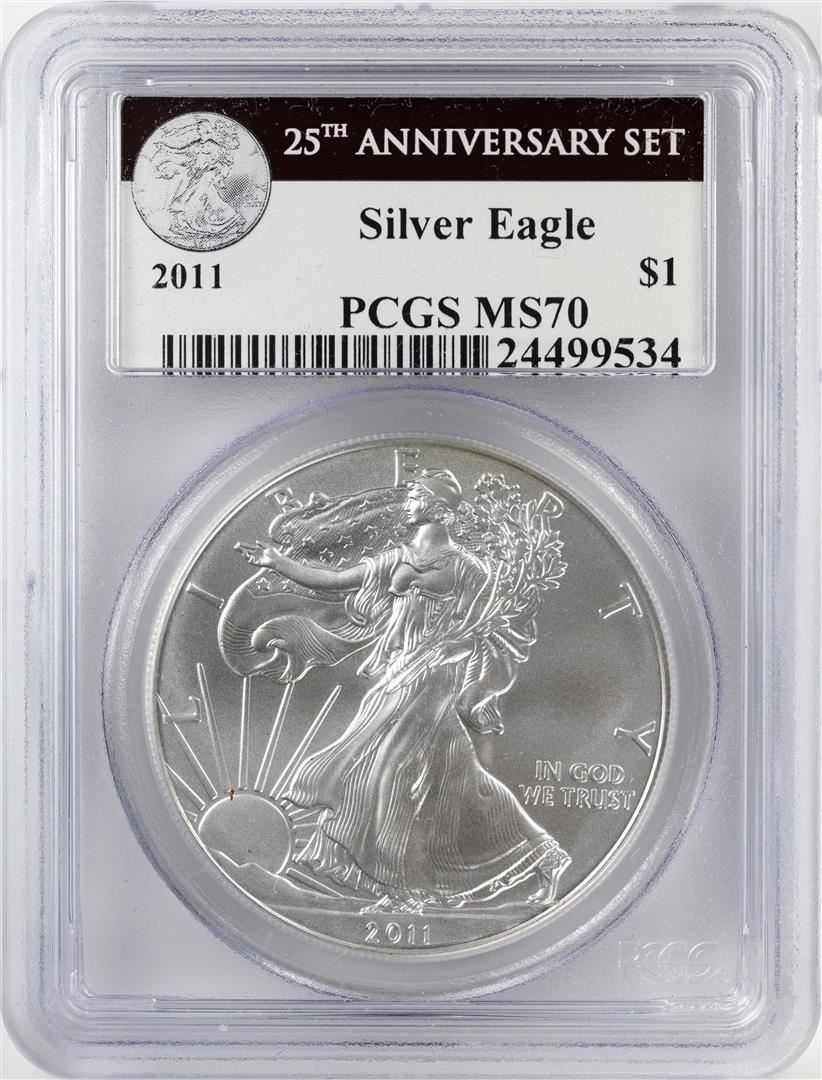 2011 $1 American Silver Eagle Coin PCGS MS70 25th Anniversary